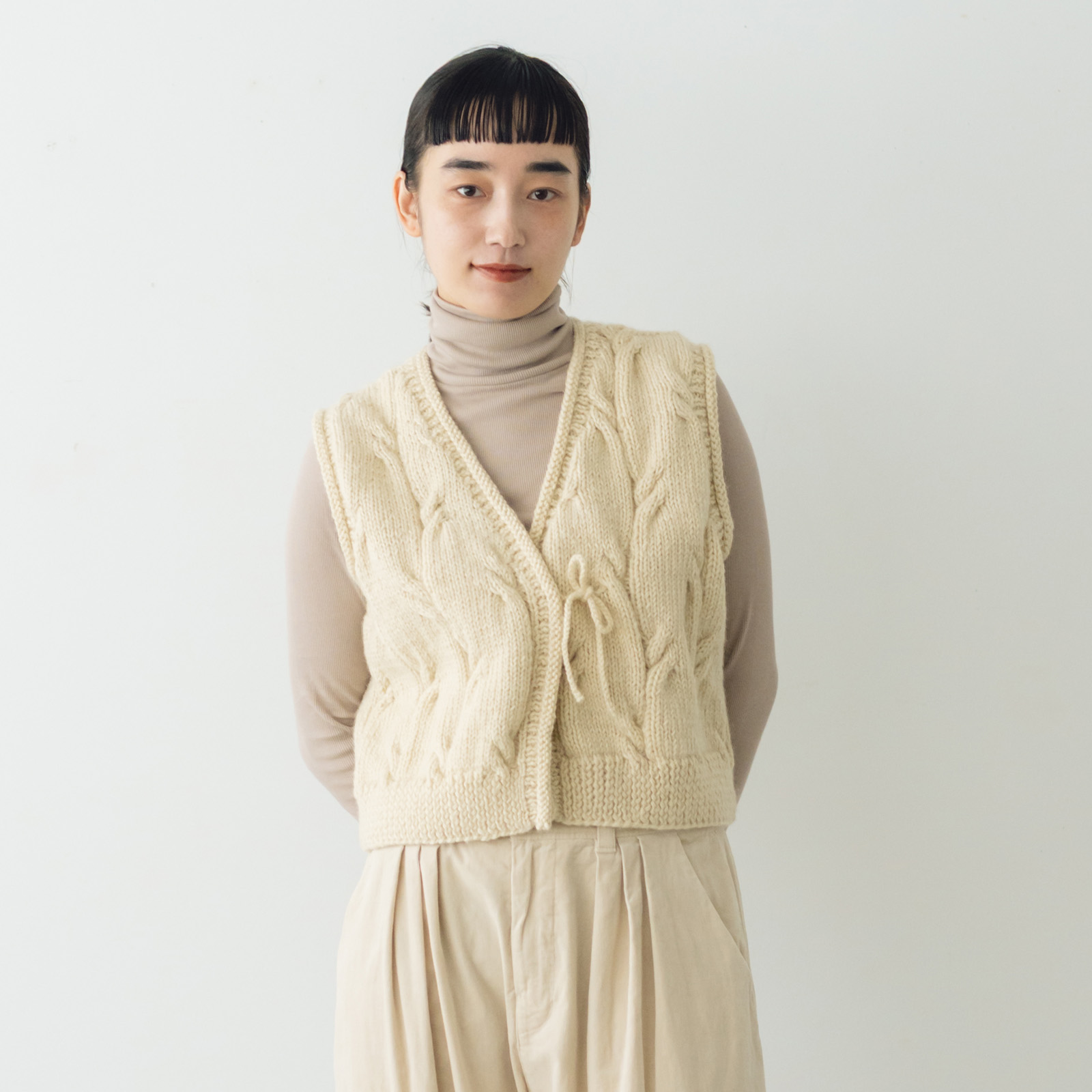 トップス "frais"、カシュクールニット "lamb"、イージーパンツ "pin dot"