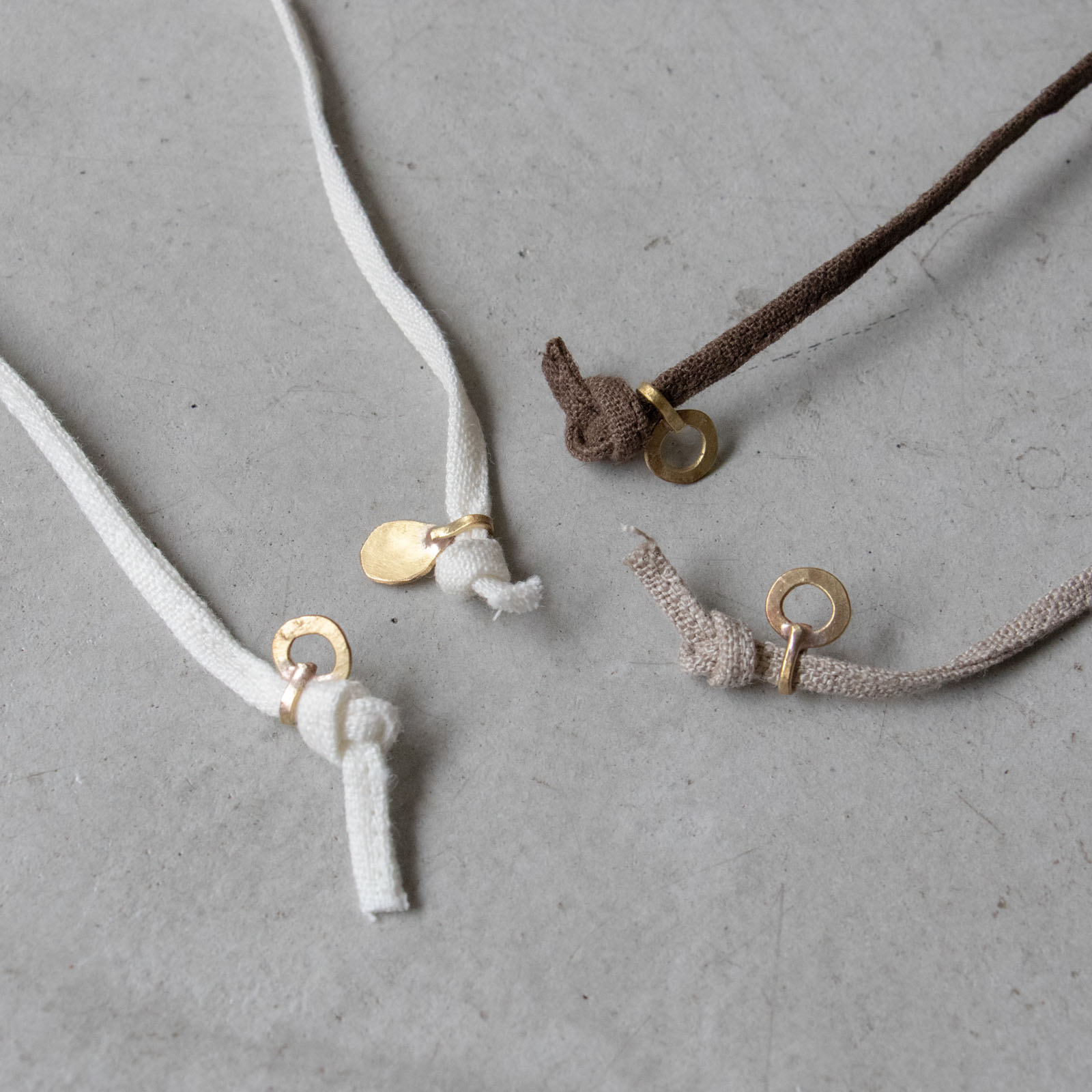 アクセントになっている真鍮の金具には、konayaさんの作品を使用しています。金具のかたちはそれぞれ異なります。