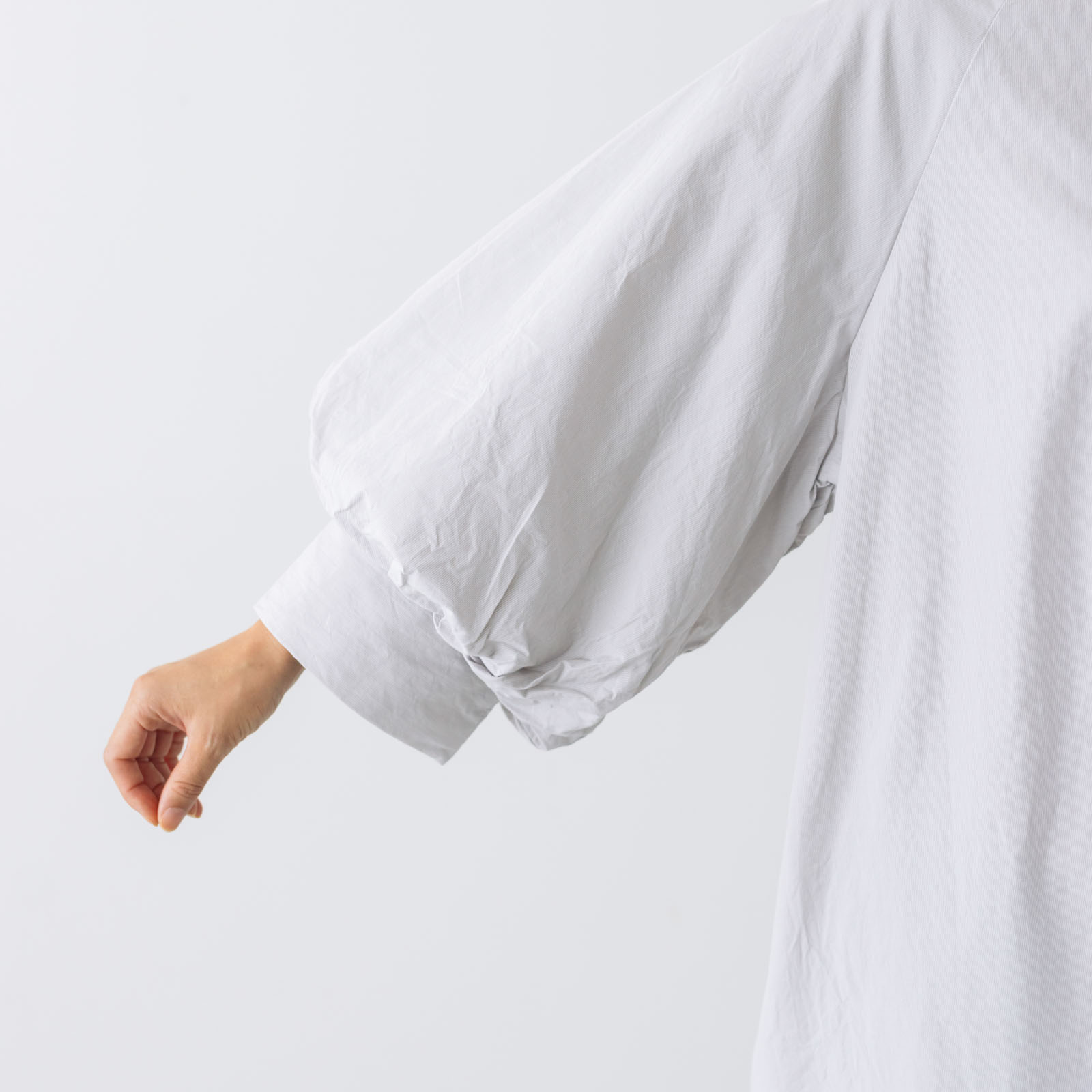 ゆったりと開きのあるネックラインに、腕の可動域が広がるラグランスリーブ、と着る人に寄り添った作りになっています。