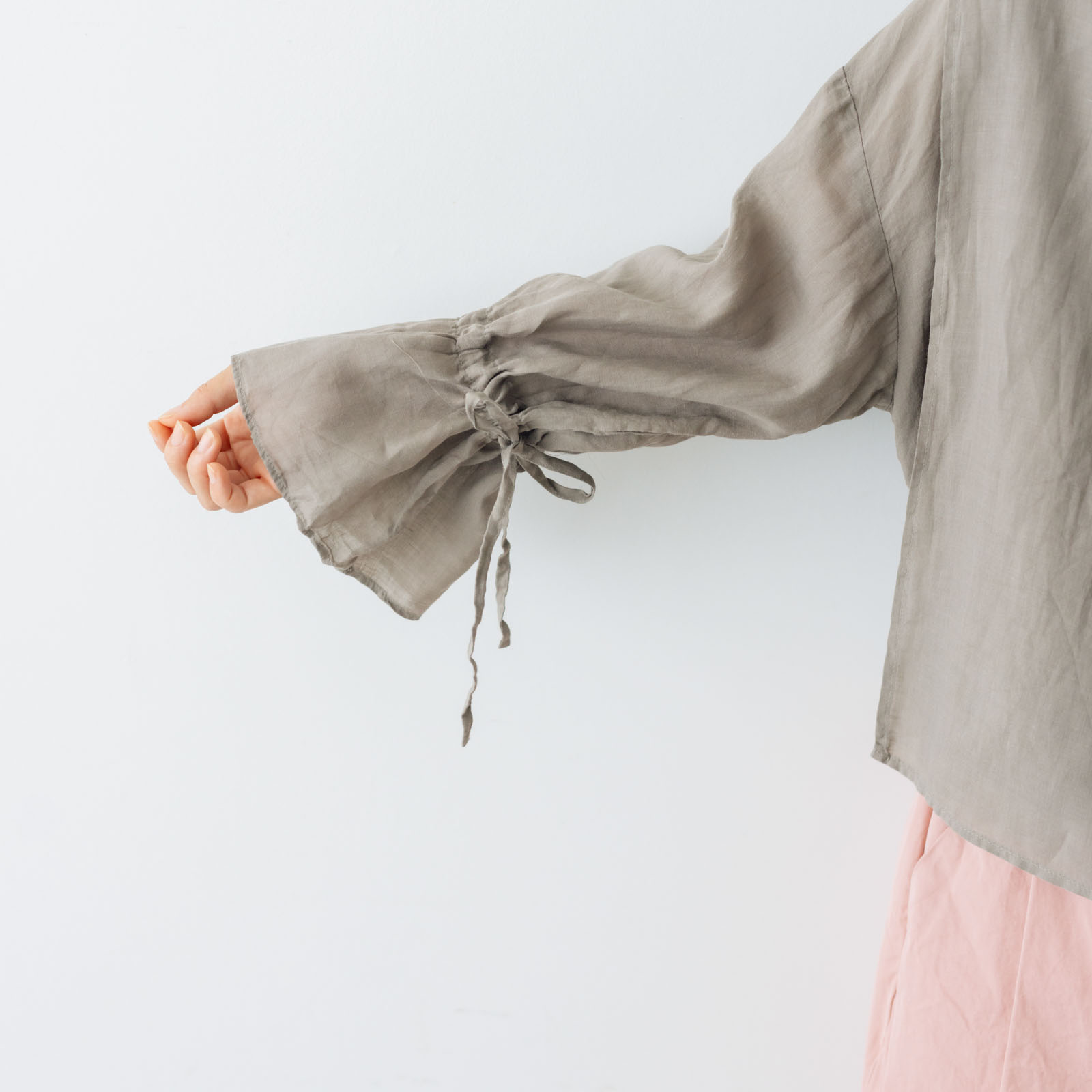 袖口はリボンで絞ることができるので、好みのシルエットに調節できます。