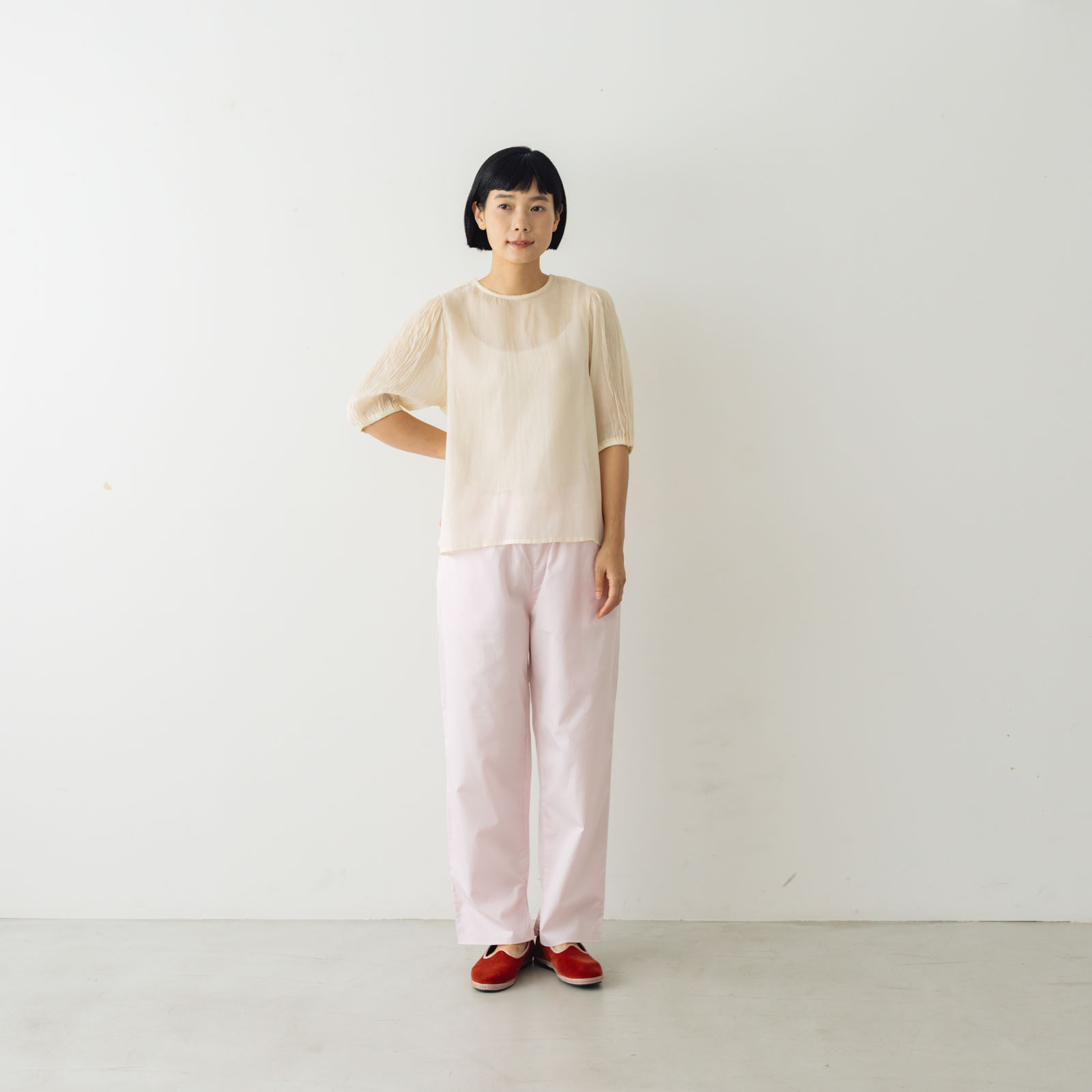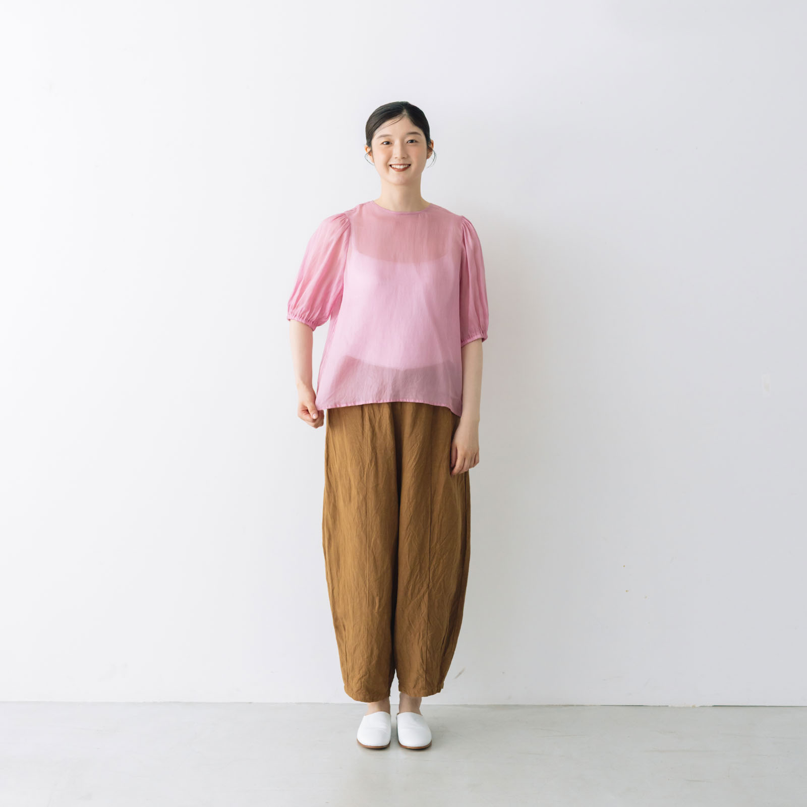生地は、上質なコットンシルクオーガンジー素材。透け感のある軽やかな生地なので暑い夏の重ね着も涼やかに。下にはタンクトップやキャミソールを。