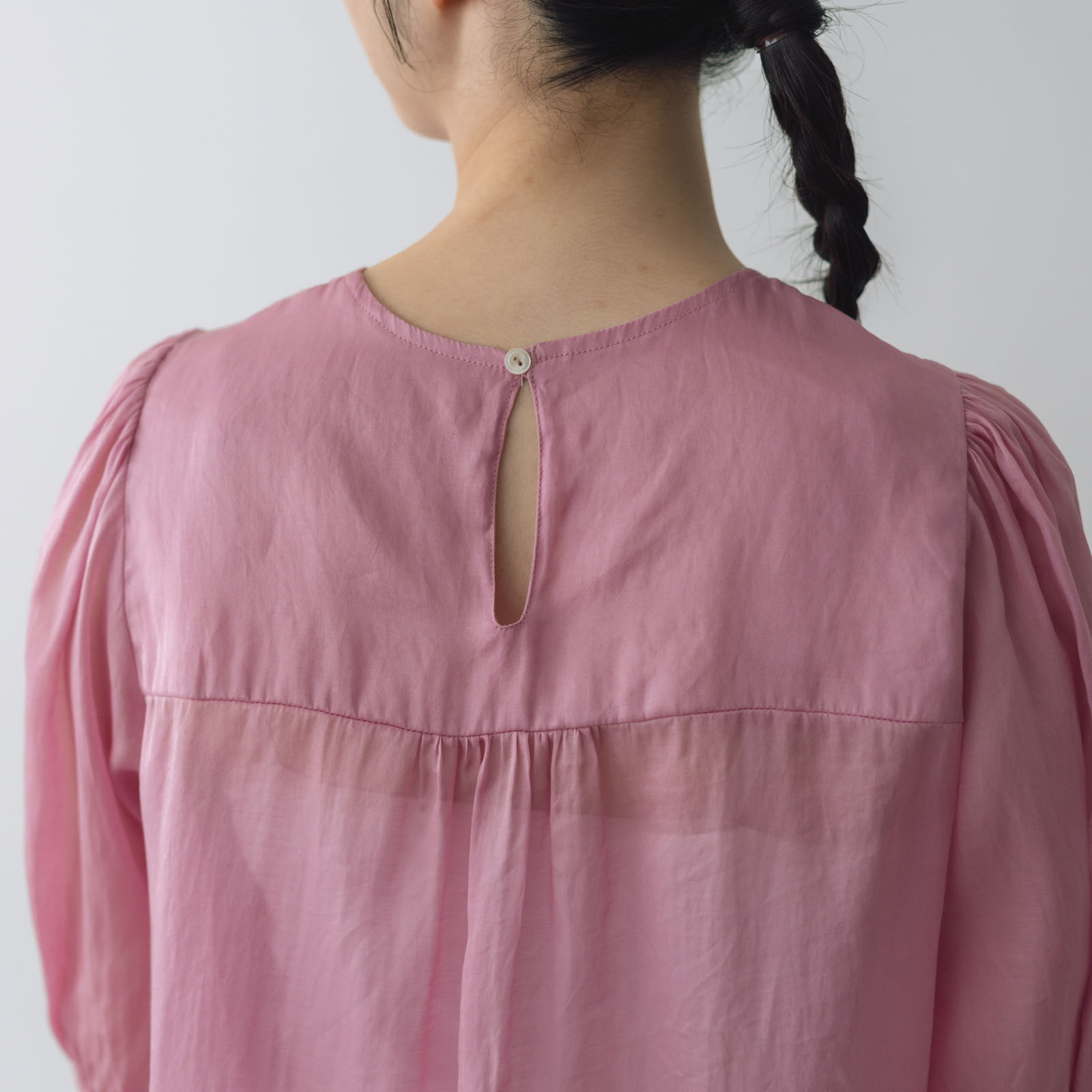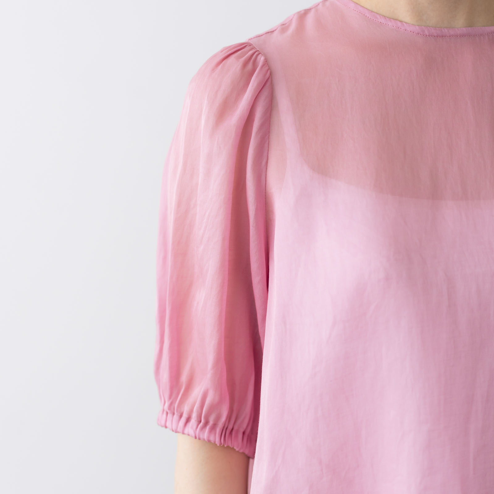 夏らしい透け感のある素材で仕立てたシンプルな5分丈ブラウス。
