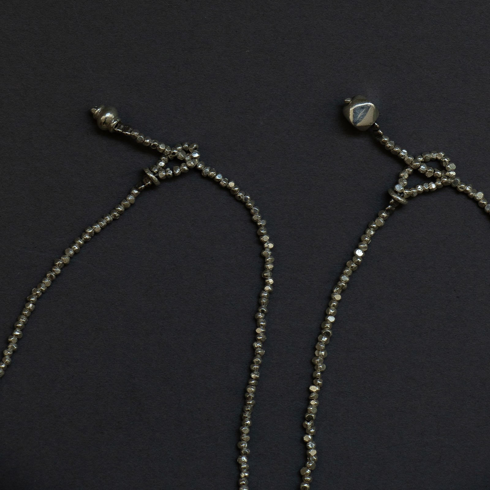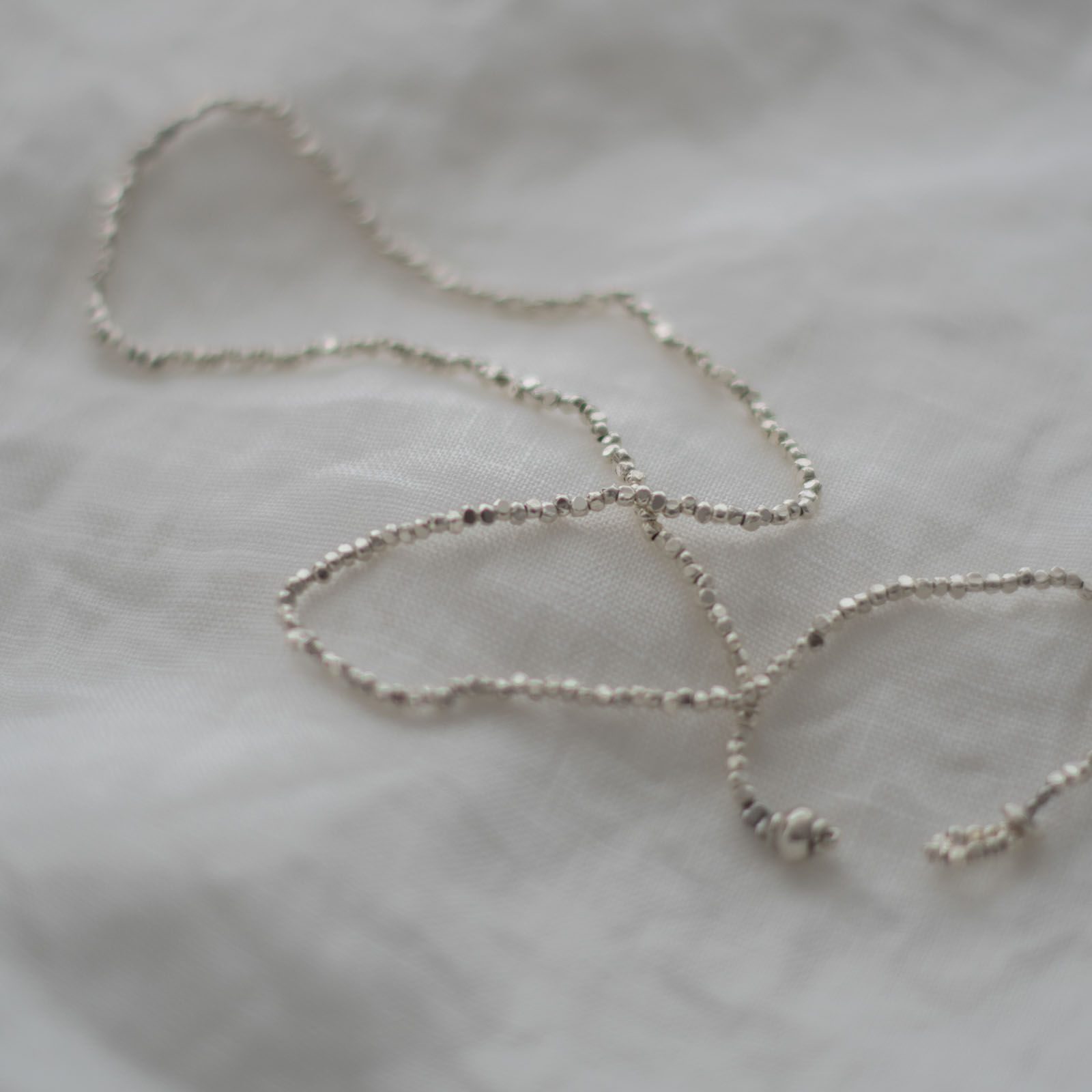 「太」はすこし大きめのビーズ多面体になっており、ぽこぽことした質感も相まって「細」よりもキラキラした輝きを放ちます。