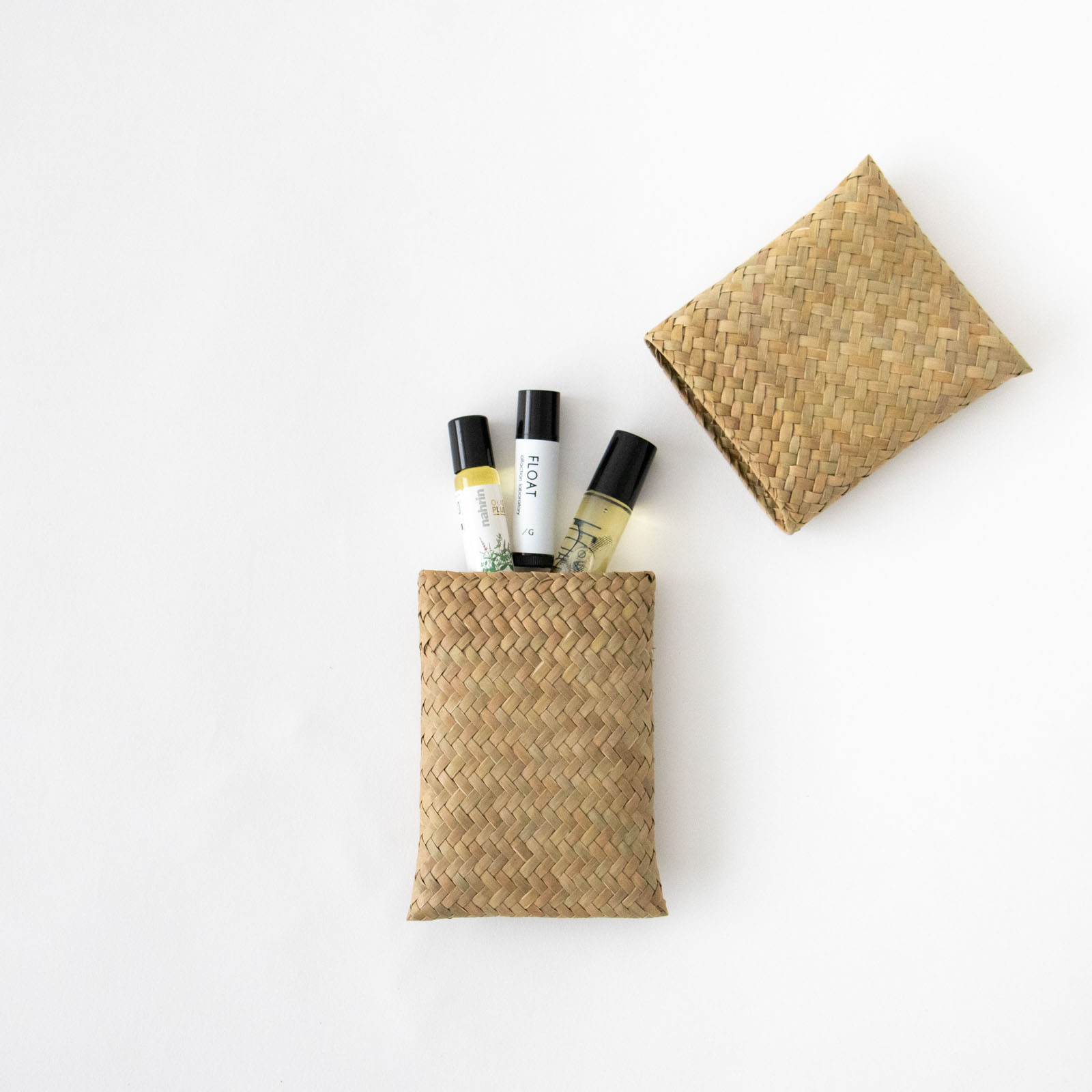 片手で持てるサイズ感の小さな蓋付きポーチ。リップクリームやロールオンなど、いつも持ち歩く小物のケースとして活躍してくれます。