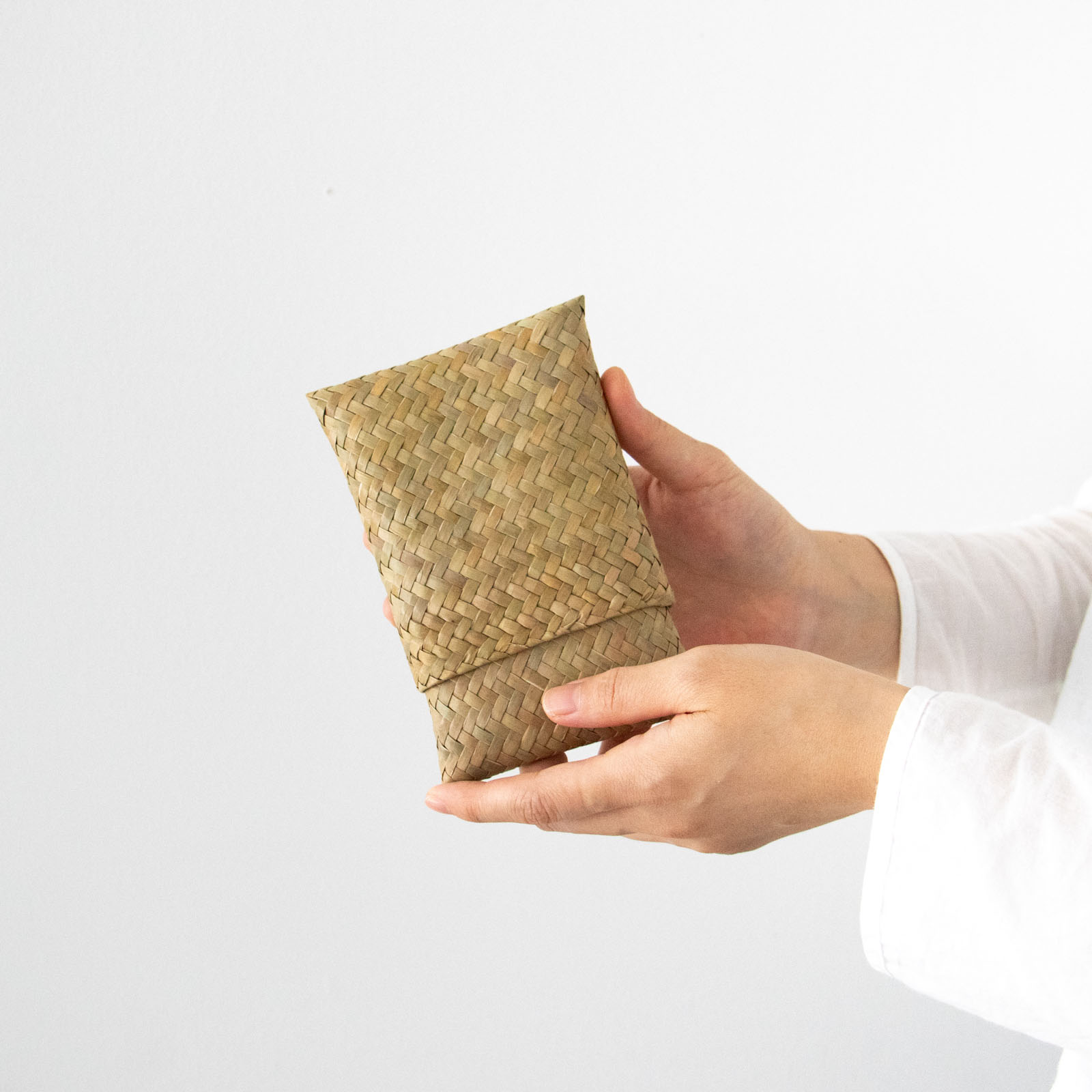 南タイの村で作られているHuuHuuオリジナルサイズの水草ボックス。水草の収穫、加工、編み、仕上げまで、現地の農家さんが手仕事で製作しています。