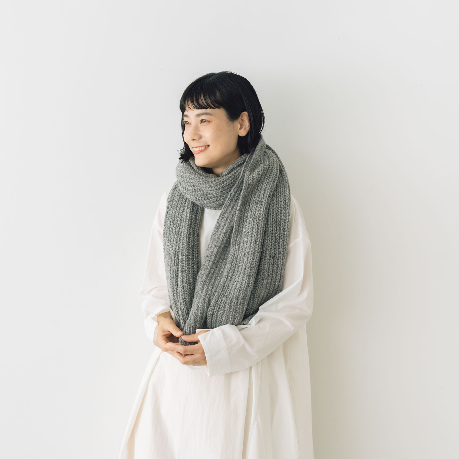 ゆるっとした編み目が抜け感があります。首元を1周巻いたり、ぐるぐると巻いてもかわいいストールです。