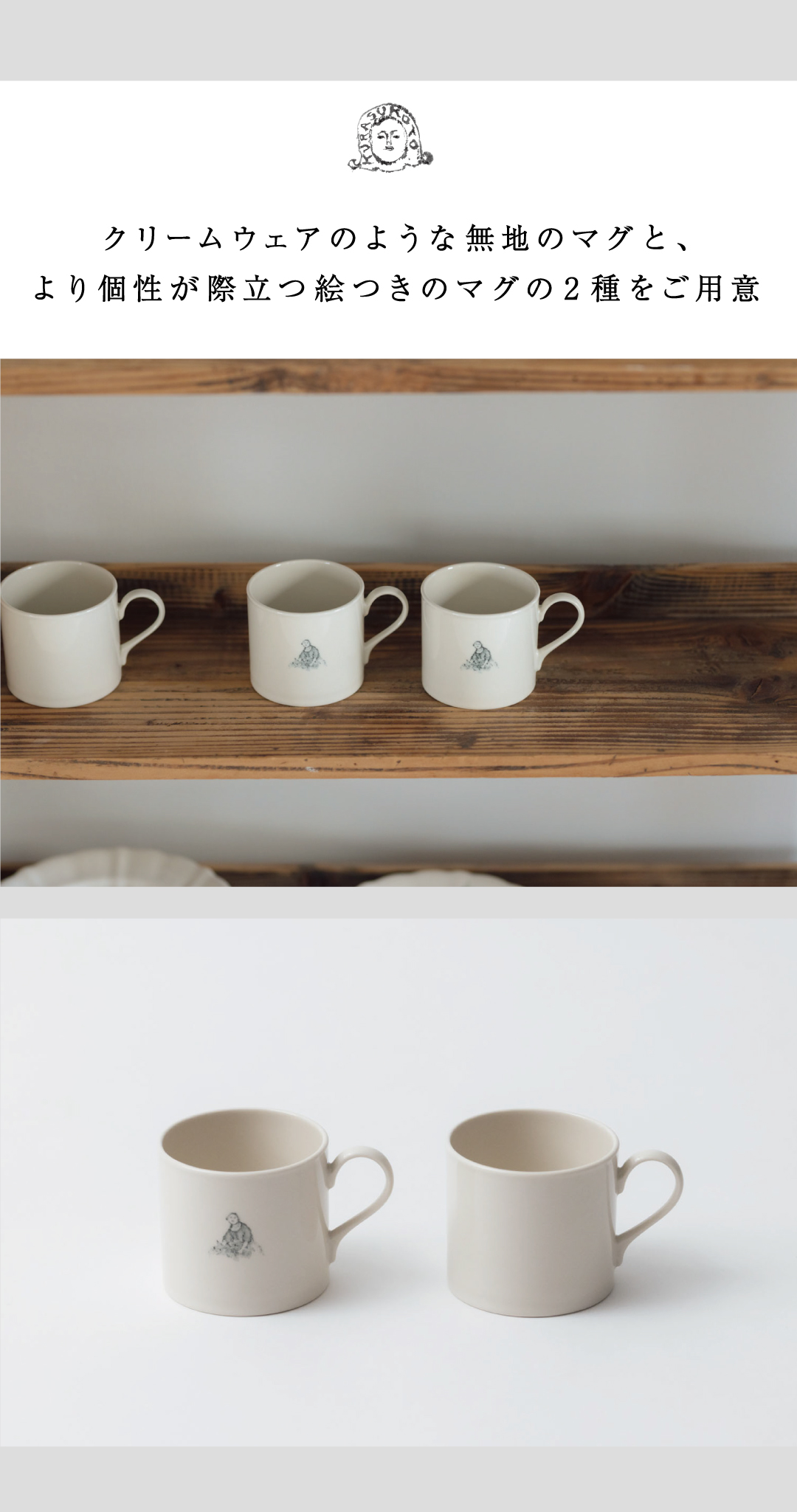 シンプルな無地のマグと、絵を施したマグの2種類をご用意しました。
