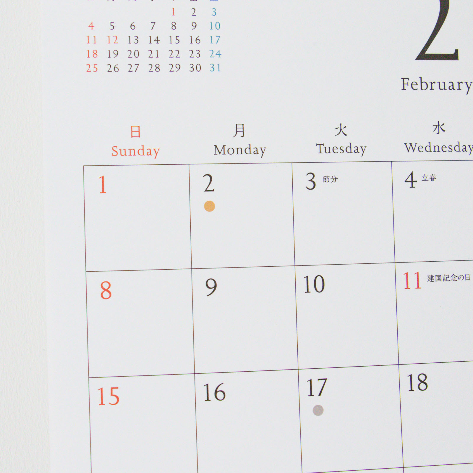ピンで留めたり、紐を通せる穴付き。カレンダー部分には、新月・満月・二十四節気が記載されています。