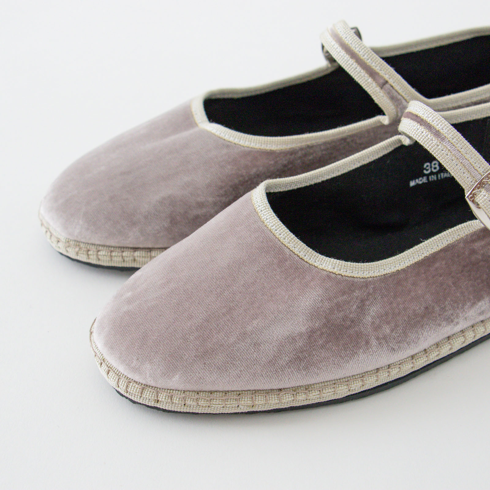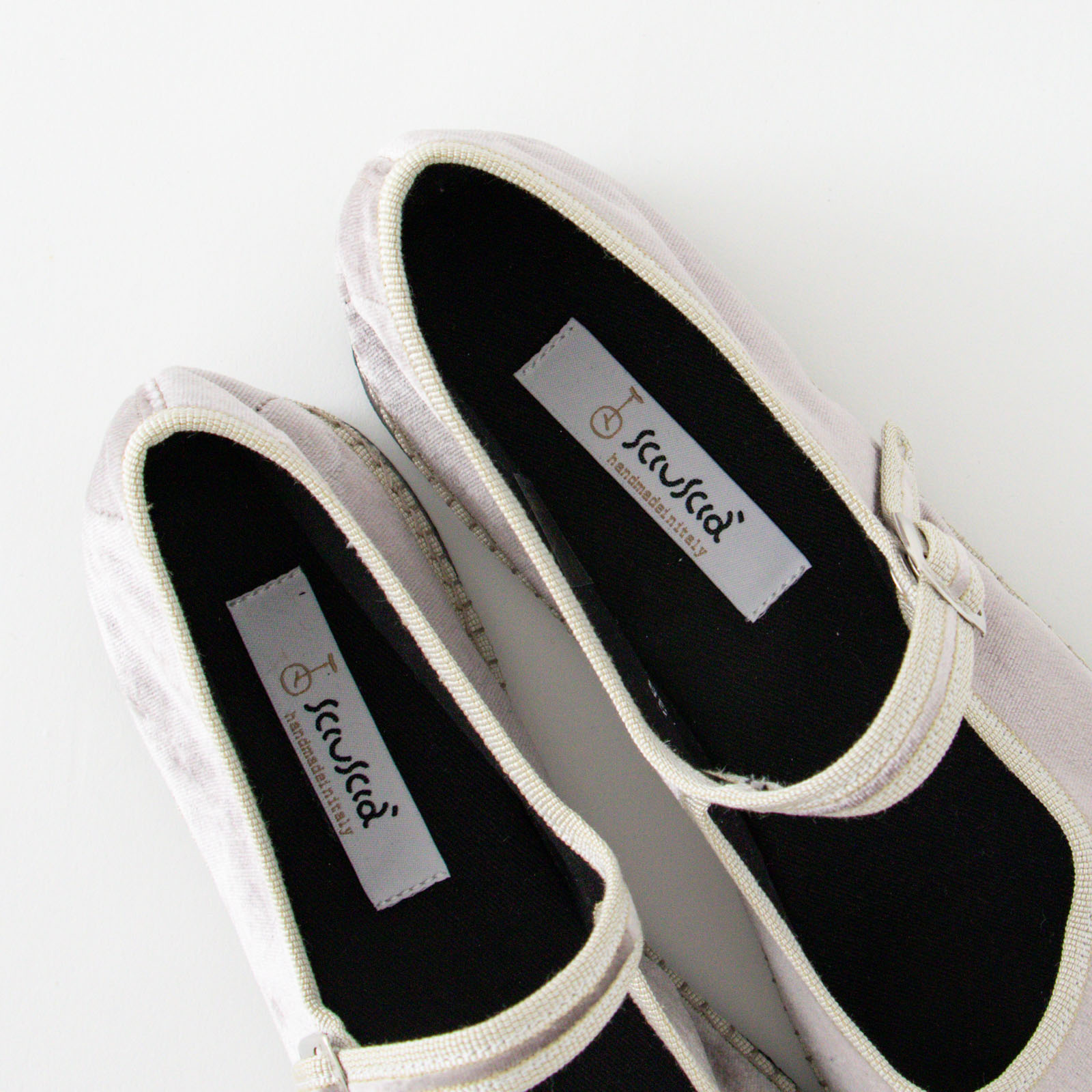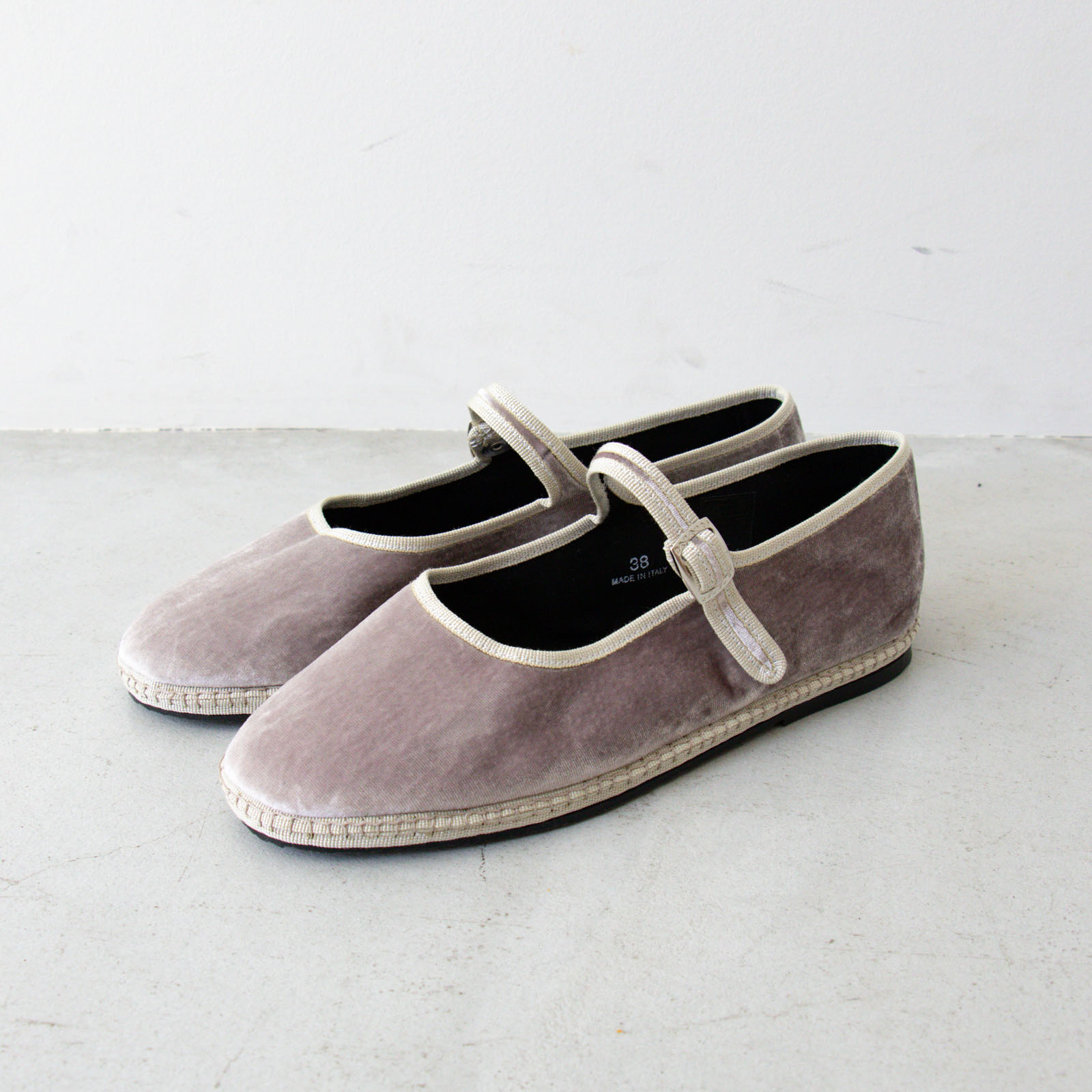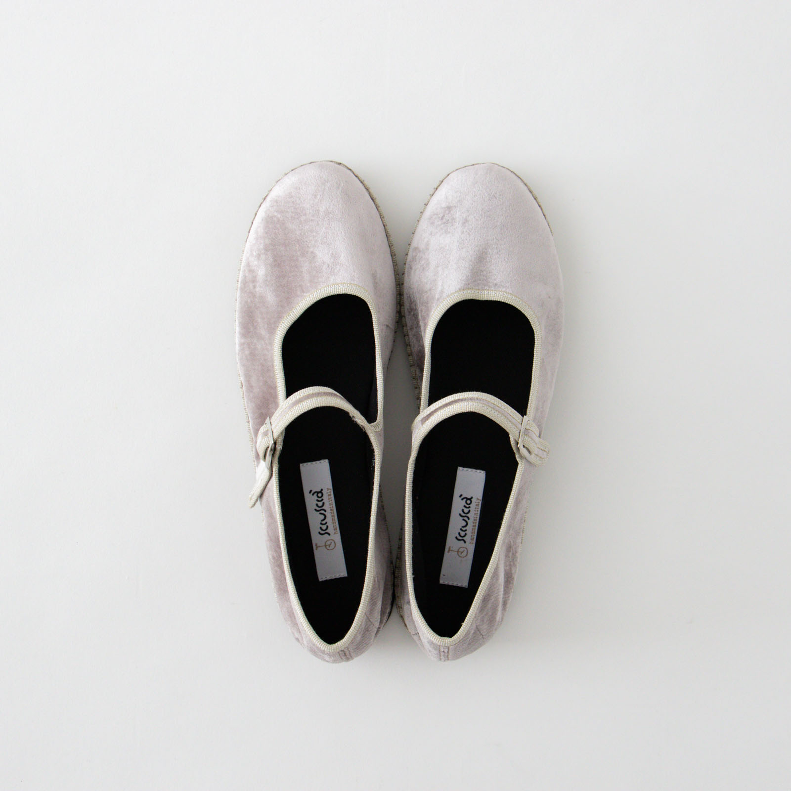 イタリアの靴職人がハンドメイドで縫い上げて作る「Sciuscià(シューシャ)」のフラットシューズ。こちらはワンストラップタイプの「MARYJANE」。ベルベットの起毛した、くたっとしたやわらかな生地で軽やかな履き心地です。