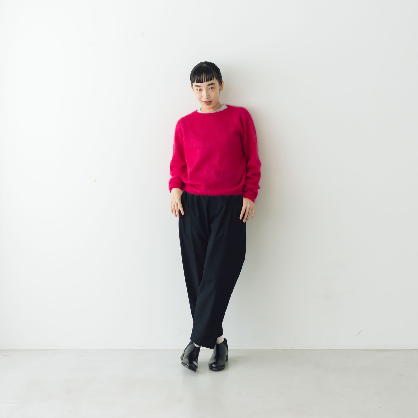 毛足が長い糸なので、透け感のある仕上がりに。大人の女性にこそ着こなせる上品な一枚です。ボーダーの長袖シャツや、キャミソールなど下に着るインナーで雰囲気を変えて着られるのもうれしいポイント。