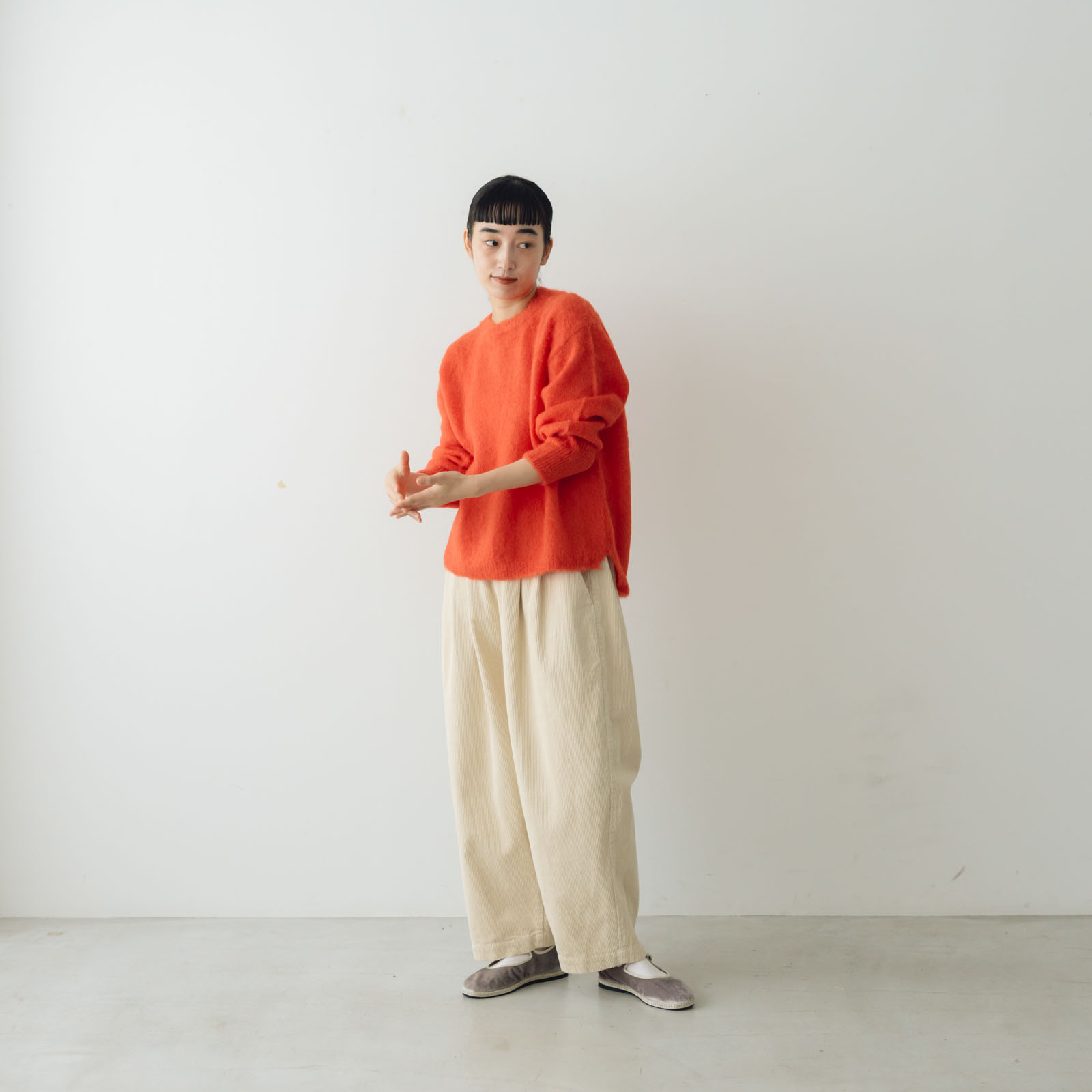 comm. archのモヘアプルオーバーは、毎年欲しくなる色味を展開。今年は、冬のコーデをパッと明るくしてくれるオレンジ、シックで大人な雰囲気のワイン、寒空の下に映えるラベンダーの3色。全色欲しくなる色展開です。
