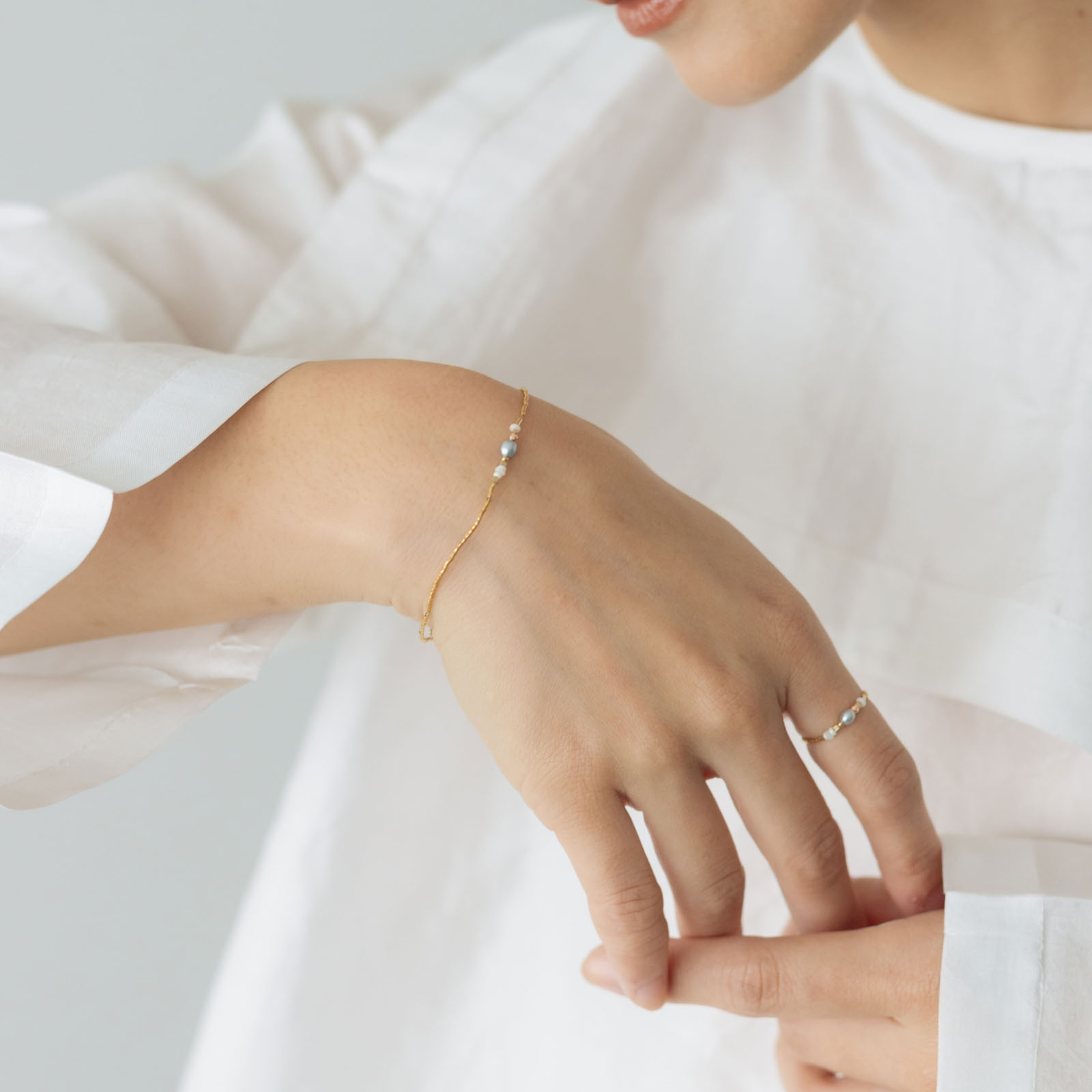 軽くつけやすいのに、ひとつ身につけるだけで大きな存在感と輝きを放ちます。お揃いのブレスレットとあわせて着用するのもおすすめです。