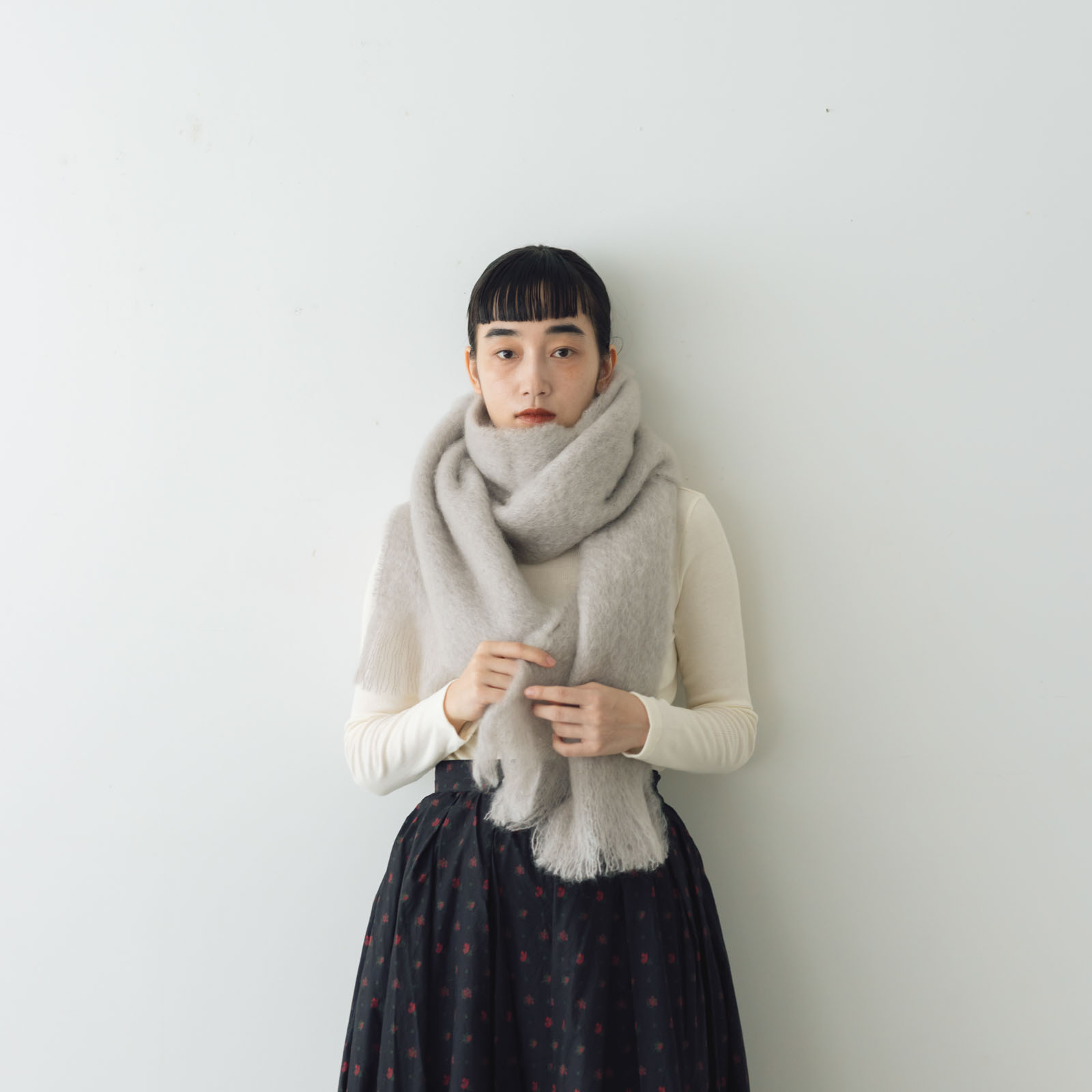 ストールのサイズは長さ170cm×35cm。幅の長さが約半分のモヘアマフラーもあります。
