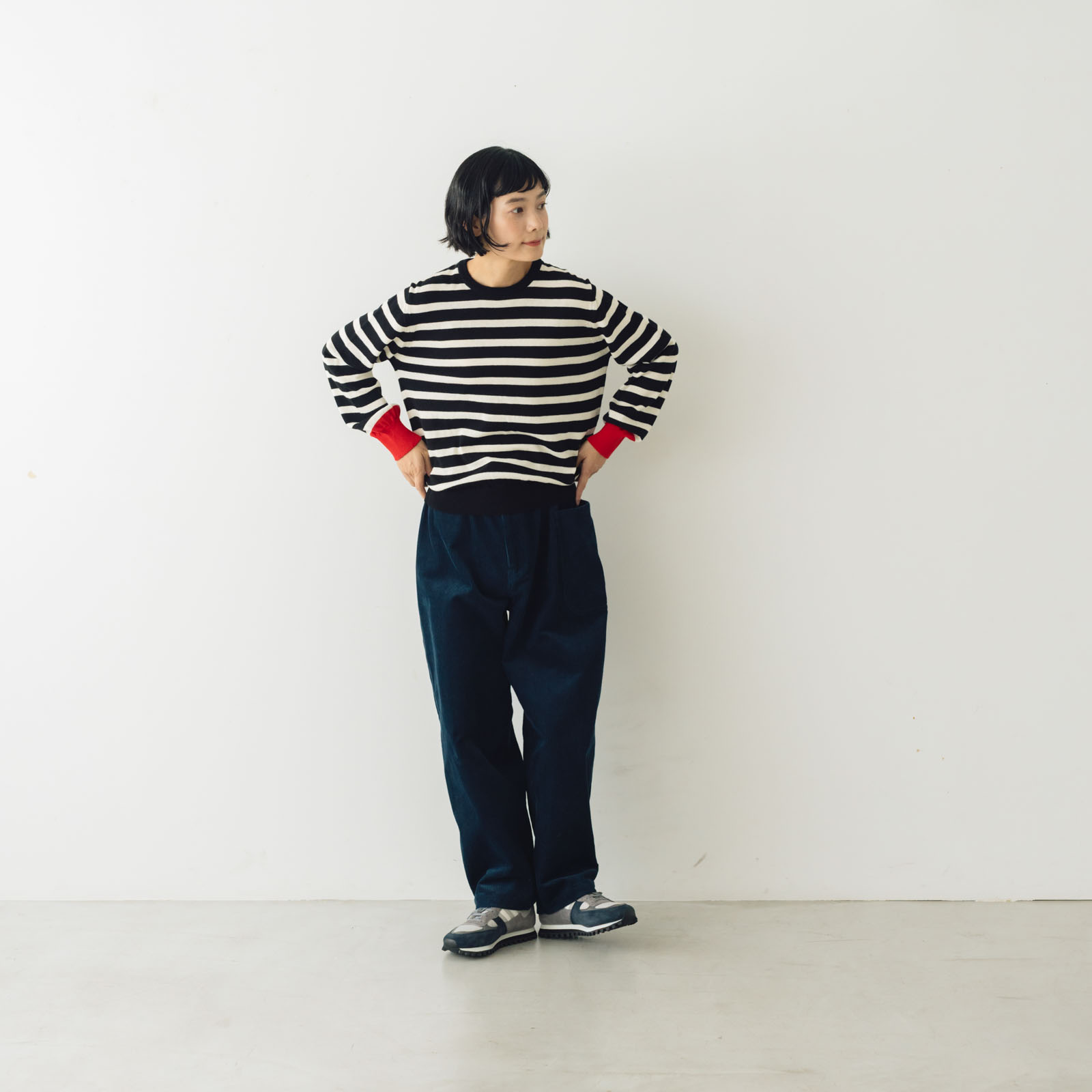 オーソドックスなボーダーにひと工夫がプラスされた、大人のマリンスタイルを作ってくれる魅力的なニットです。