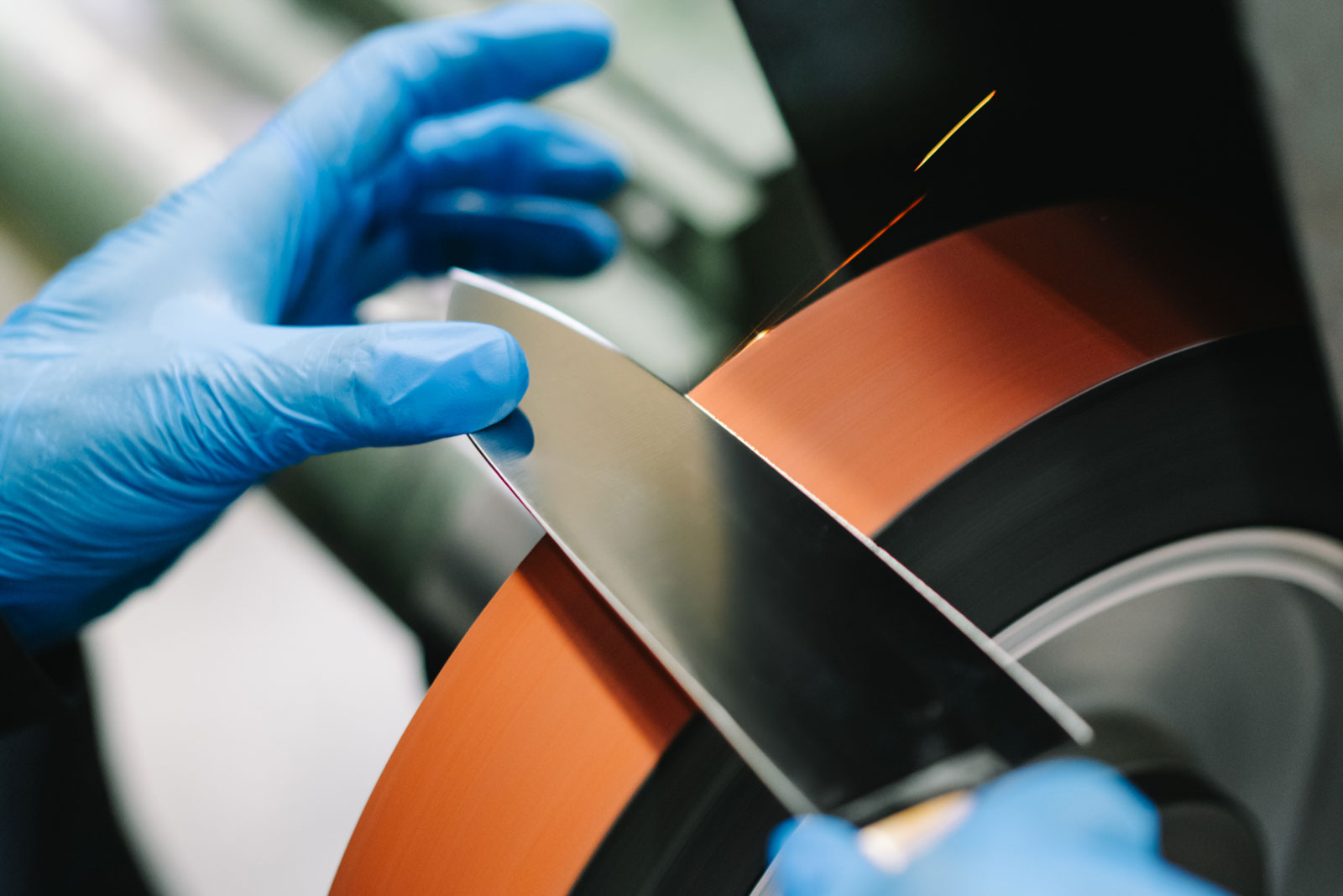 包丁の要は、なんといっても「刃」。「まっすぐな包丁」では、硬度の高い「モリブデン鋼」を採用しています。刃を薄く仕上げられる鋼材で、ステンレスより硬く、炭素鋼よりサビにくいのが特徴です。職人の手作業で焼き入れ、水溶き、研磨という工程を経て、薄くしなやかでありながら強度のある刃に仕上げています。