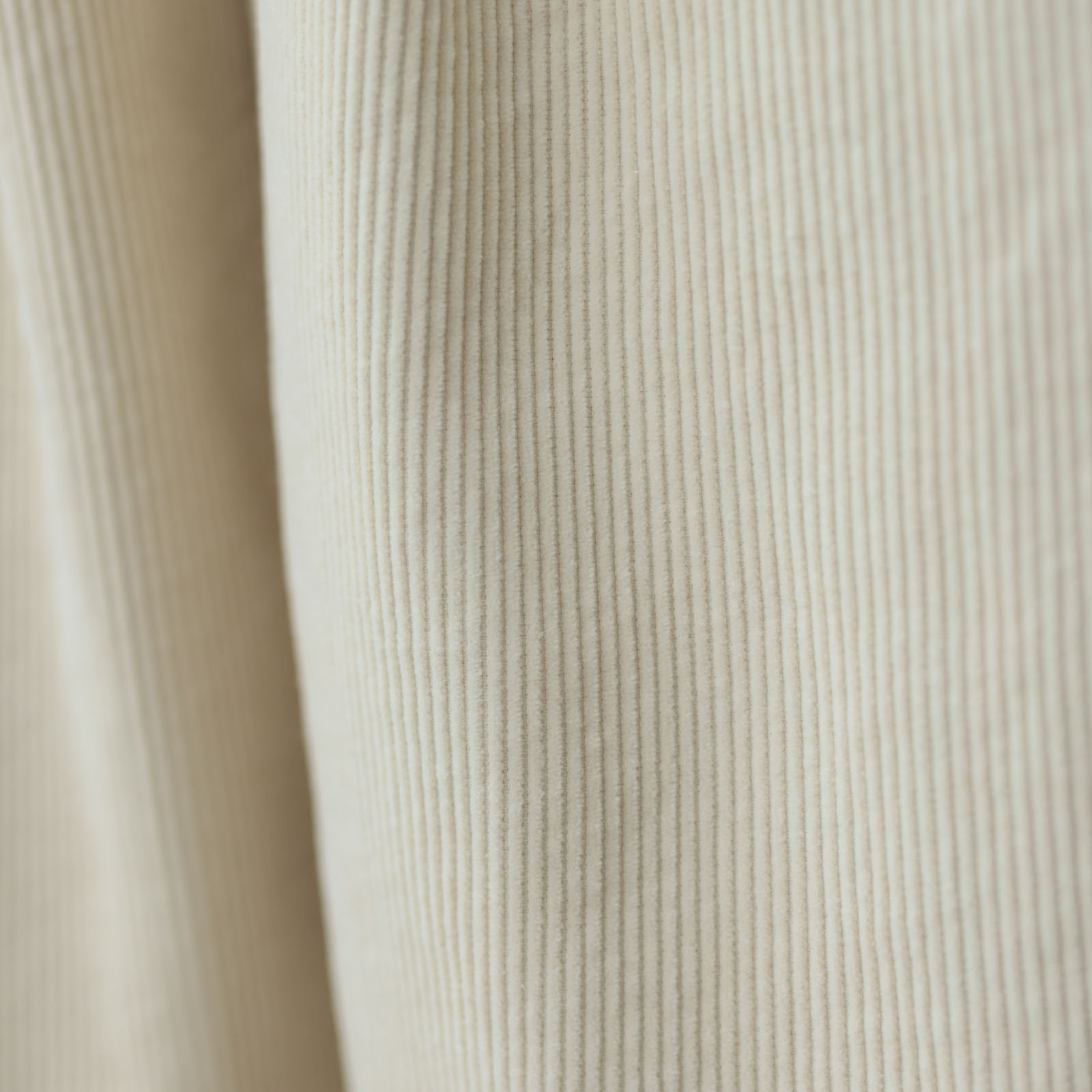 素材は太い畝が特徴的な8ウェルのコットンコーデュロイ素材。国内の機屋さんで織り上げたソフトでふくらみのある風合いに仕上がっています。