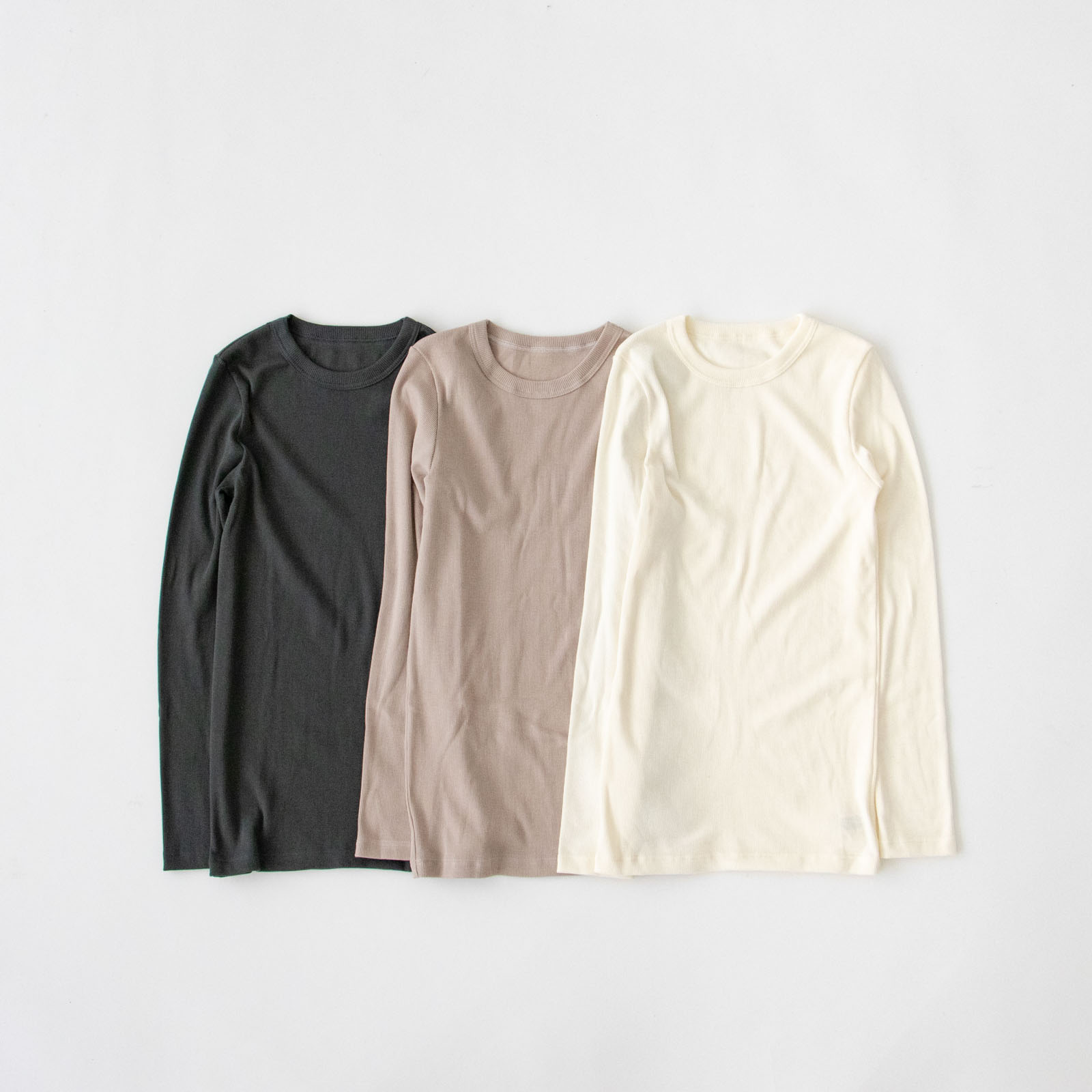 デイリーユースしたいコットン100%のリブ編みカットソー。シンプルで無駄なデザインを入れていないからこそ、日常にフィットする相棒のようなカットソーに仕上がっています。