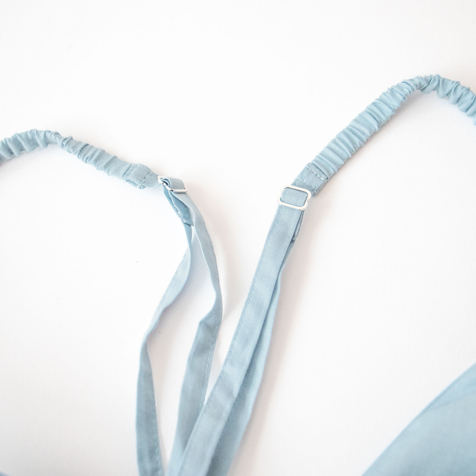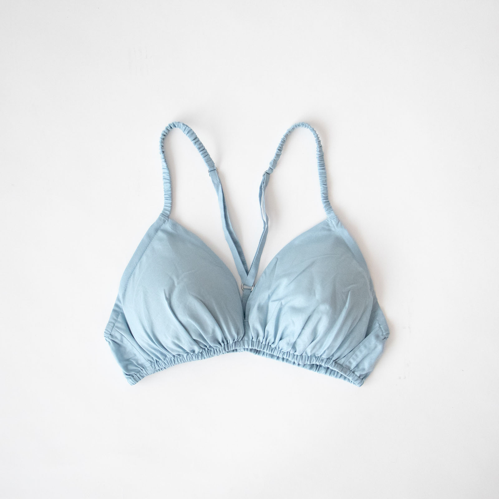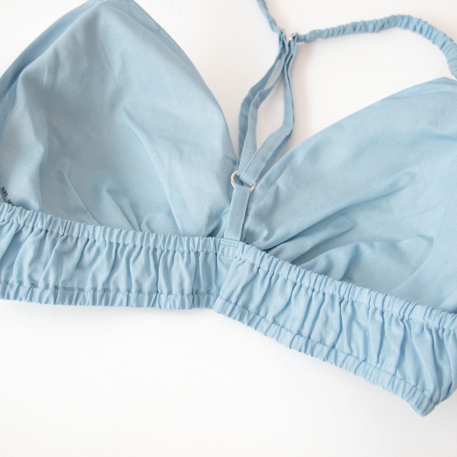 軽くて肌触りがさらりとしたコットン布帛素材で仕立てられたTESHIKIのブラ。「SKY」は、澄んだ空のようなやわらかなスカイブルー。