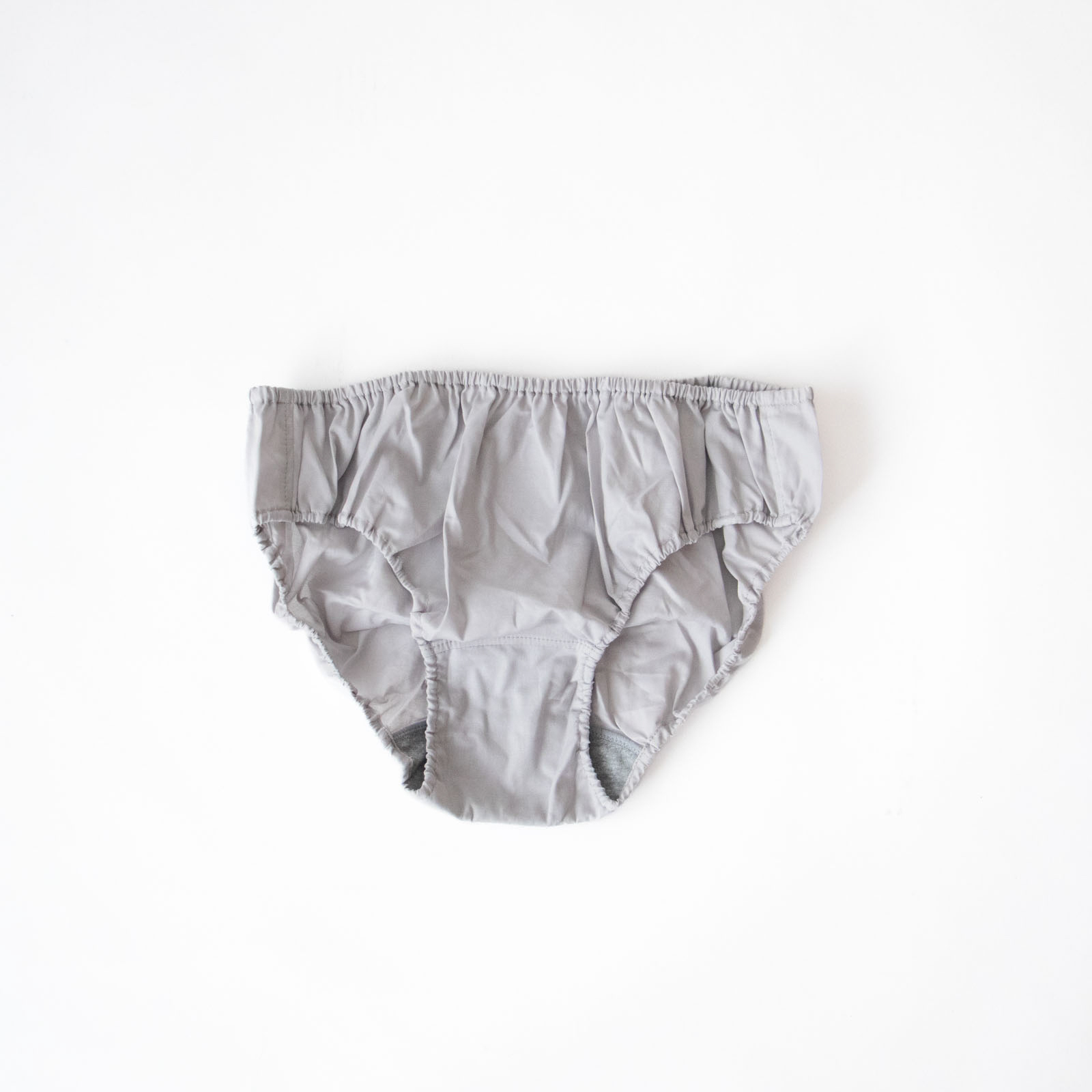 肌をふんわりとやさしく包み込む布帛のパンツ。「DOLPHIN」は、のびやかに泳ぐイルカのように、どこかやさしい透明感のあるグレーです。