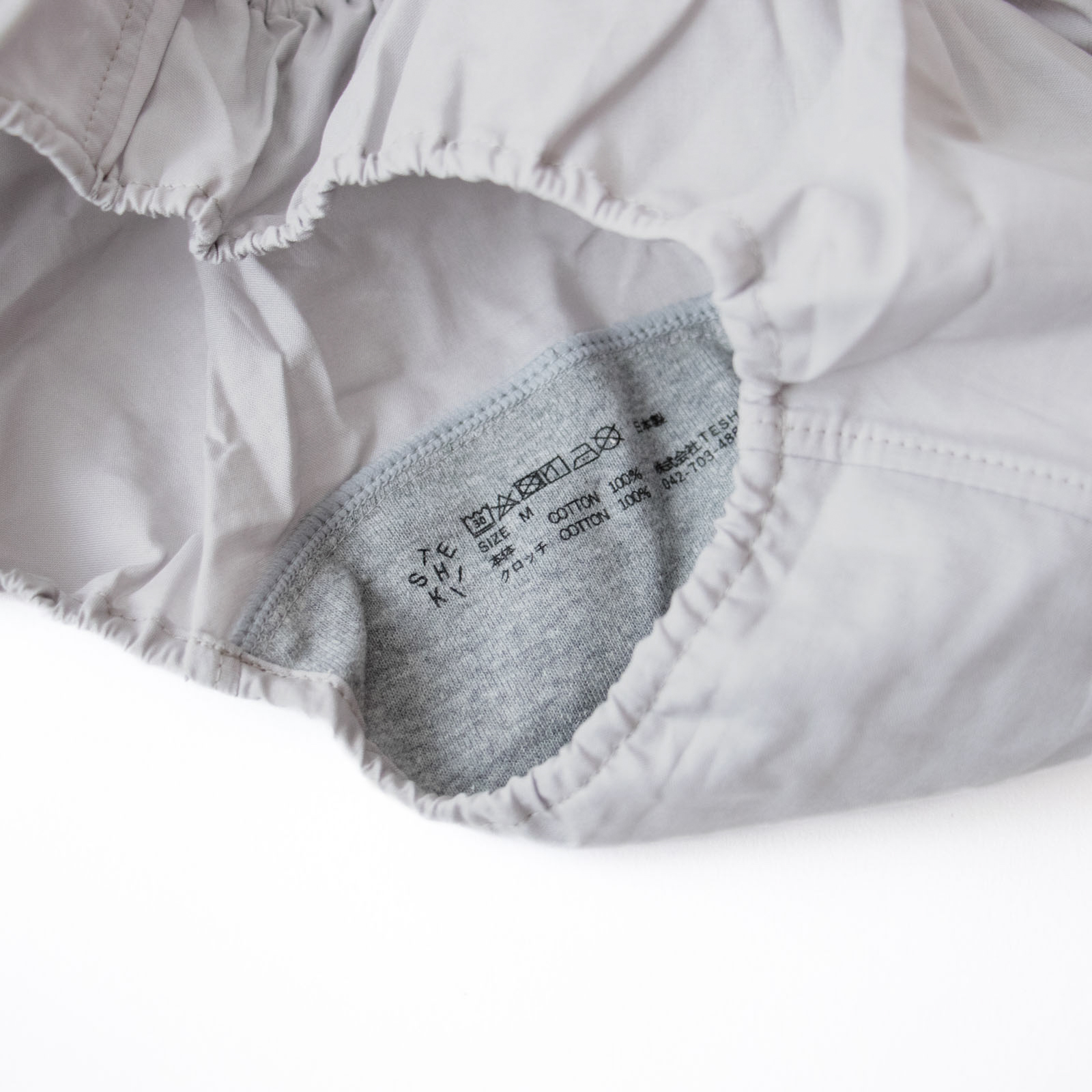 サラッとしたコットン素材で、履いた時に肌と布との間にわずかな空間ができるため、通気性がよいのが特徴。内側のデリケートゾーンにはオーガニックコットンのクロッチ布が施され優しい肌あたりに。