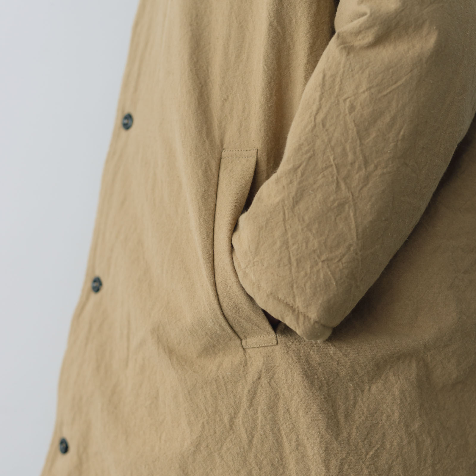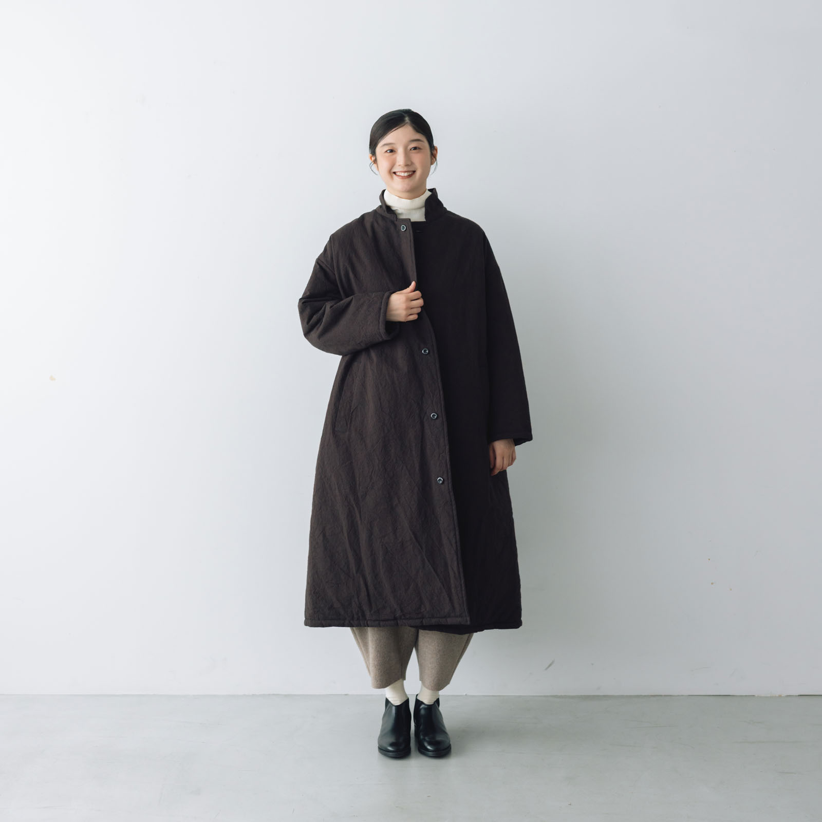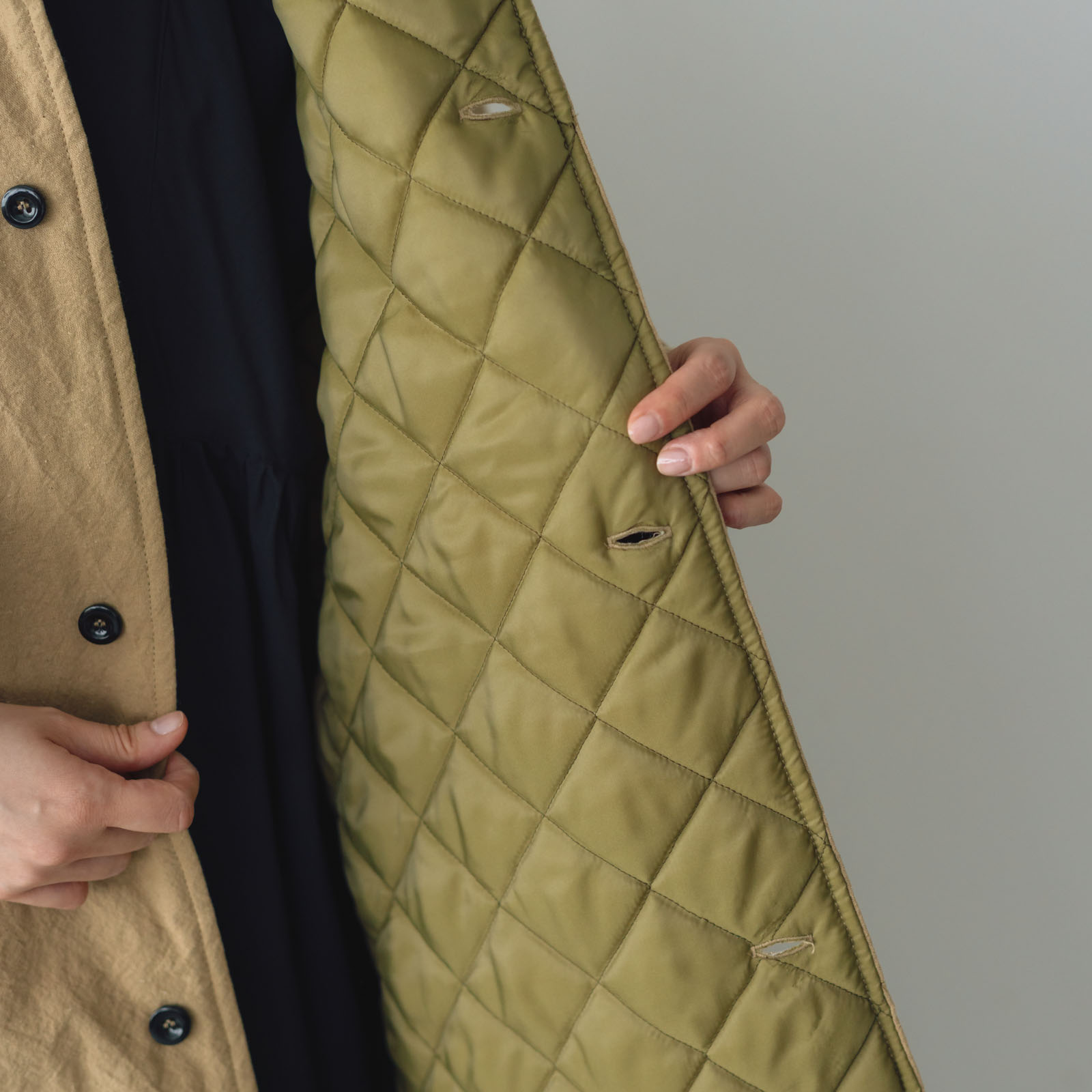 裏地が中綿キルトなので、軽く保温性抜群のコートに仕上がっています。