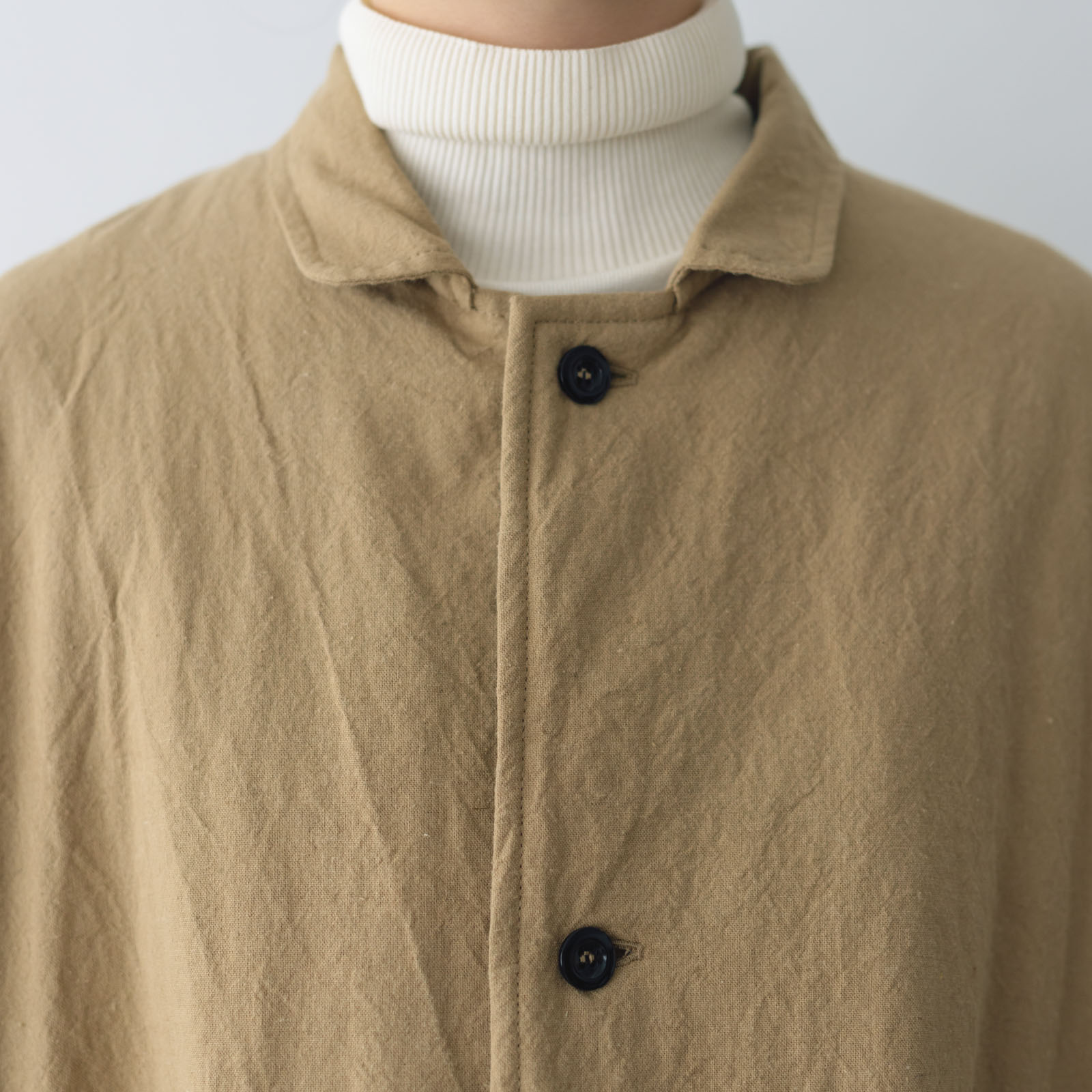 裾に向かって広がるAラインシルエットと、ガバッと羽織れる大きめのサイズ感が魅力です。