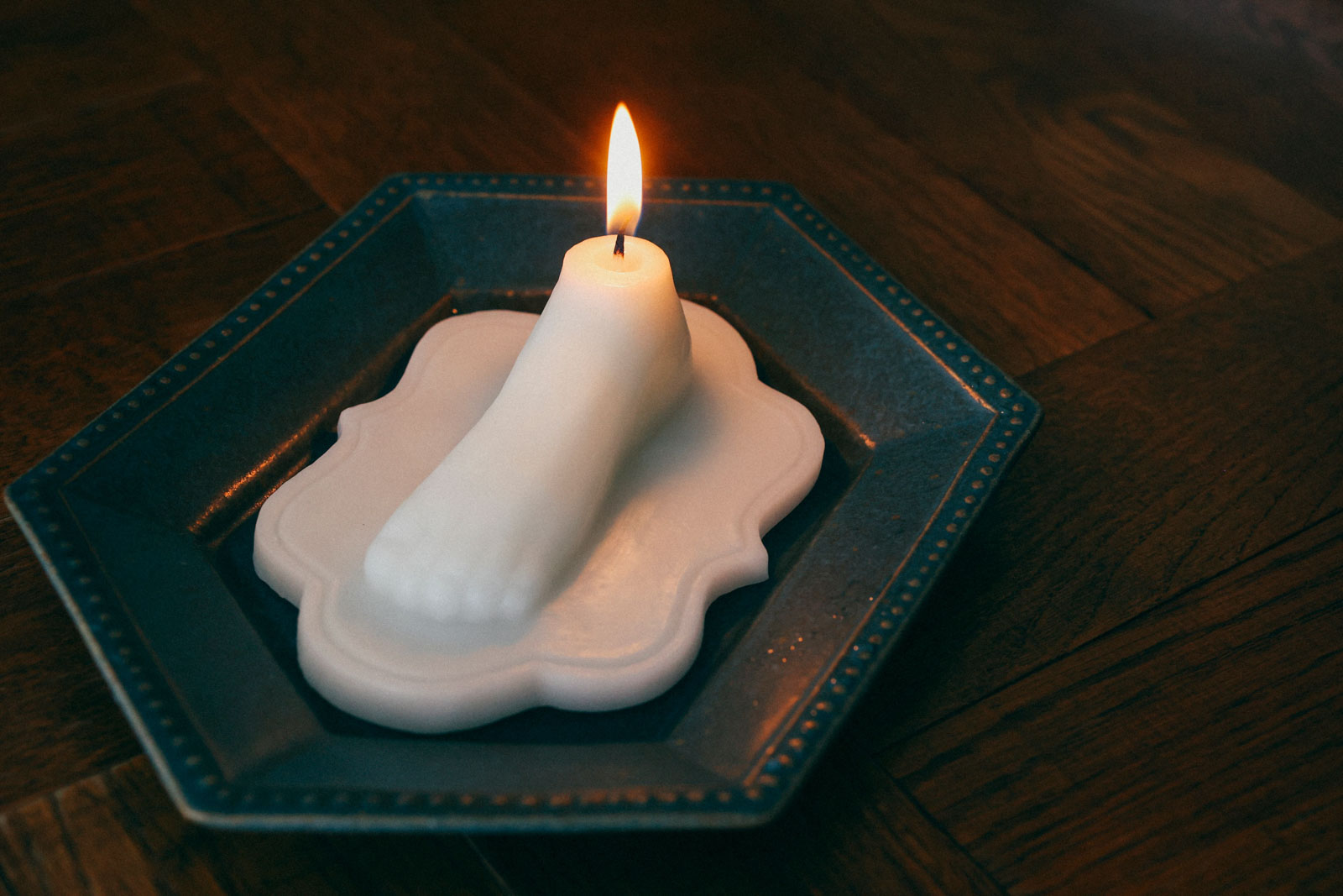 “足をあたためる”ことを大切にしている HOKOS warmer & goods らしく、足のかたちをモチーフにしたキャンドルです。