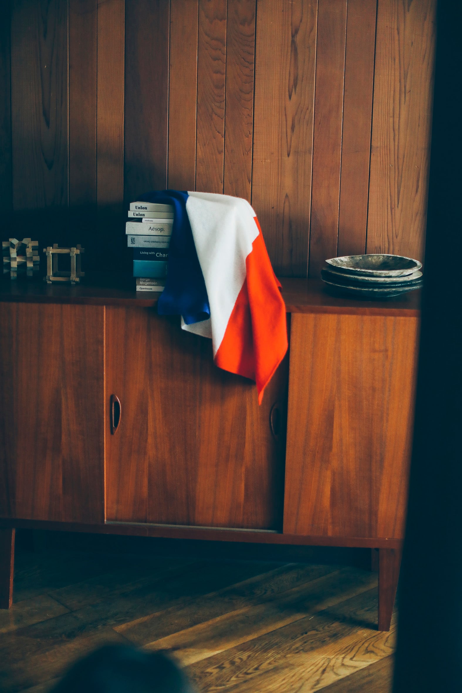 赤・白・青の配色は、折り方や巻き方次第でさまざまな表情を見せてくれます。