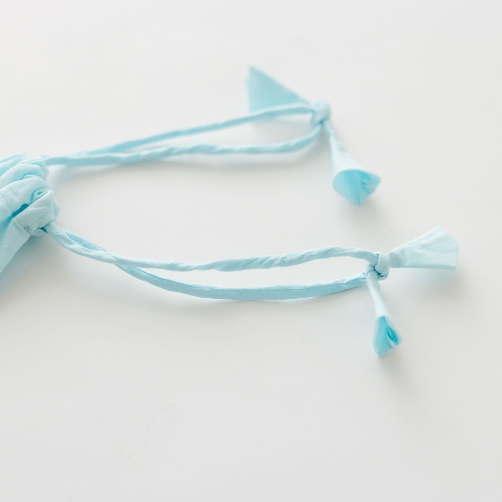 紐の先には「サモサ」と呼ばれている三角形の飾りがあり、これはインド料理のサモサの形からイメージされたものなのだとか。この飾りがアクセントになっていて、いつもの巾着とはひと味違うかわいさがあるのもポイントです。