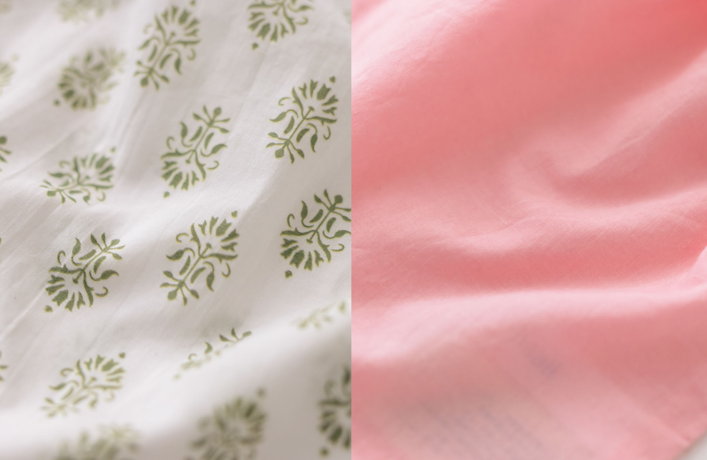 発色のいい色にリズミカルな柄、そして薄手のコットン生地でやわらかく味わいのある風合いが魅力ですが、これはインドの職人さんの手でひとつひとつ丁寧に仕上げられているからこそ。