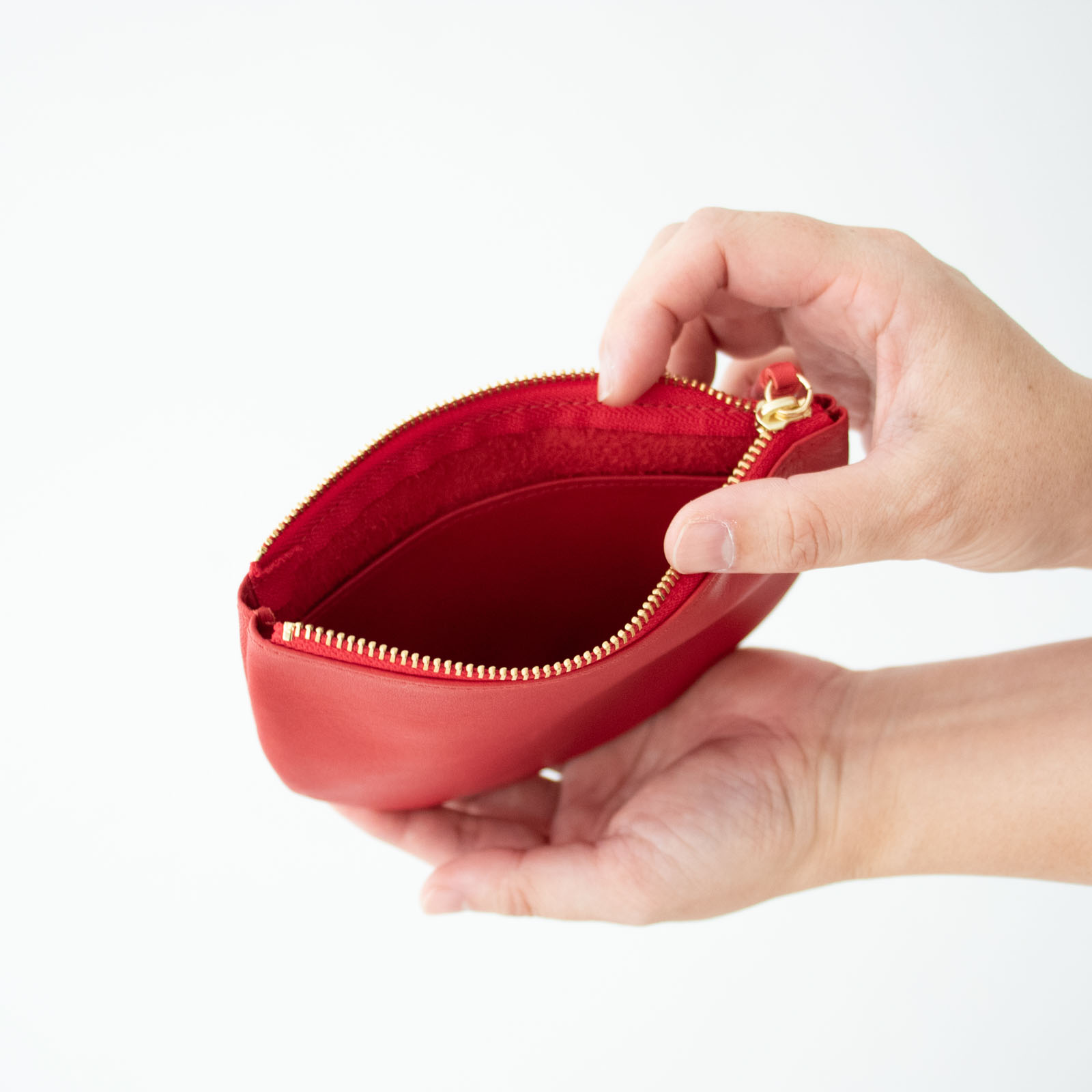 中に仕切りがあるので、コインやカードを入れてお財布代わりに使ったり、リップなどのコスメや、アクセサリーなどの小物入れとしてお使いいただけます。