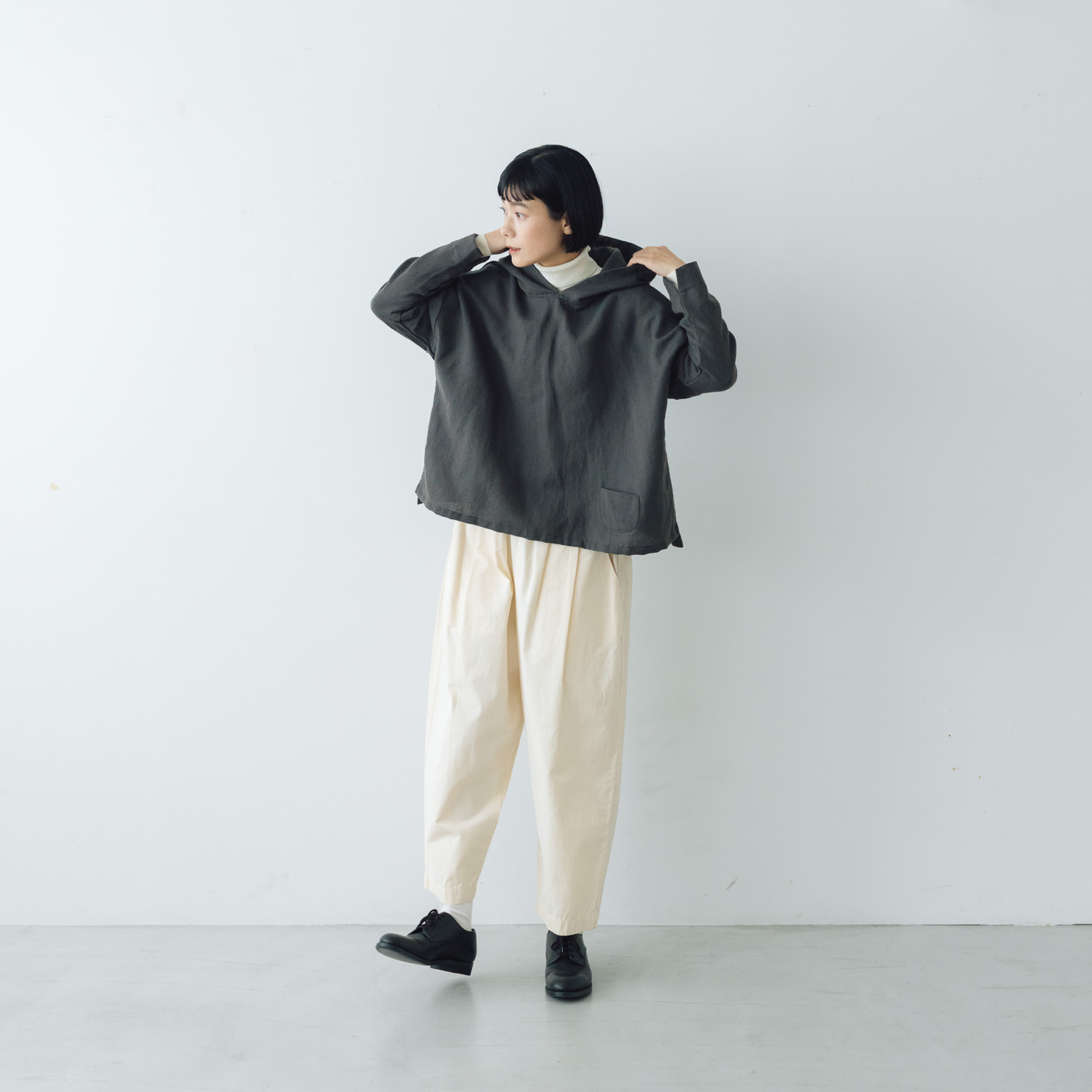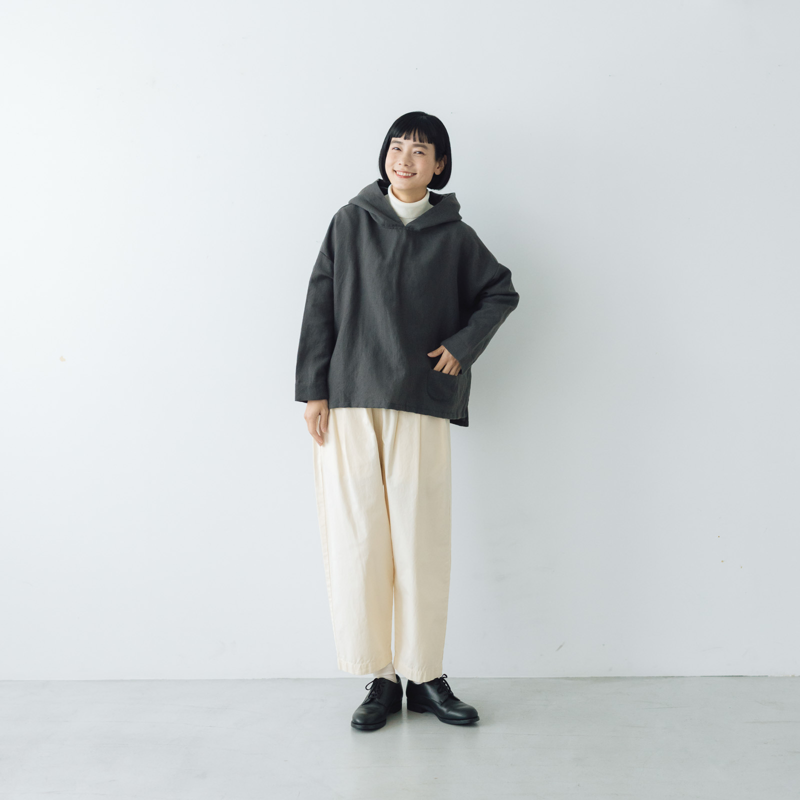 Gauze# 縮絨 ウール イージー フード ブラウス チャコール