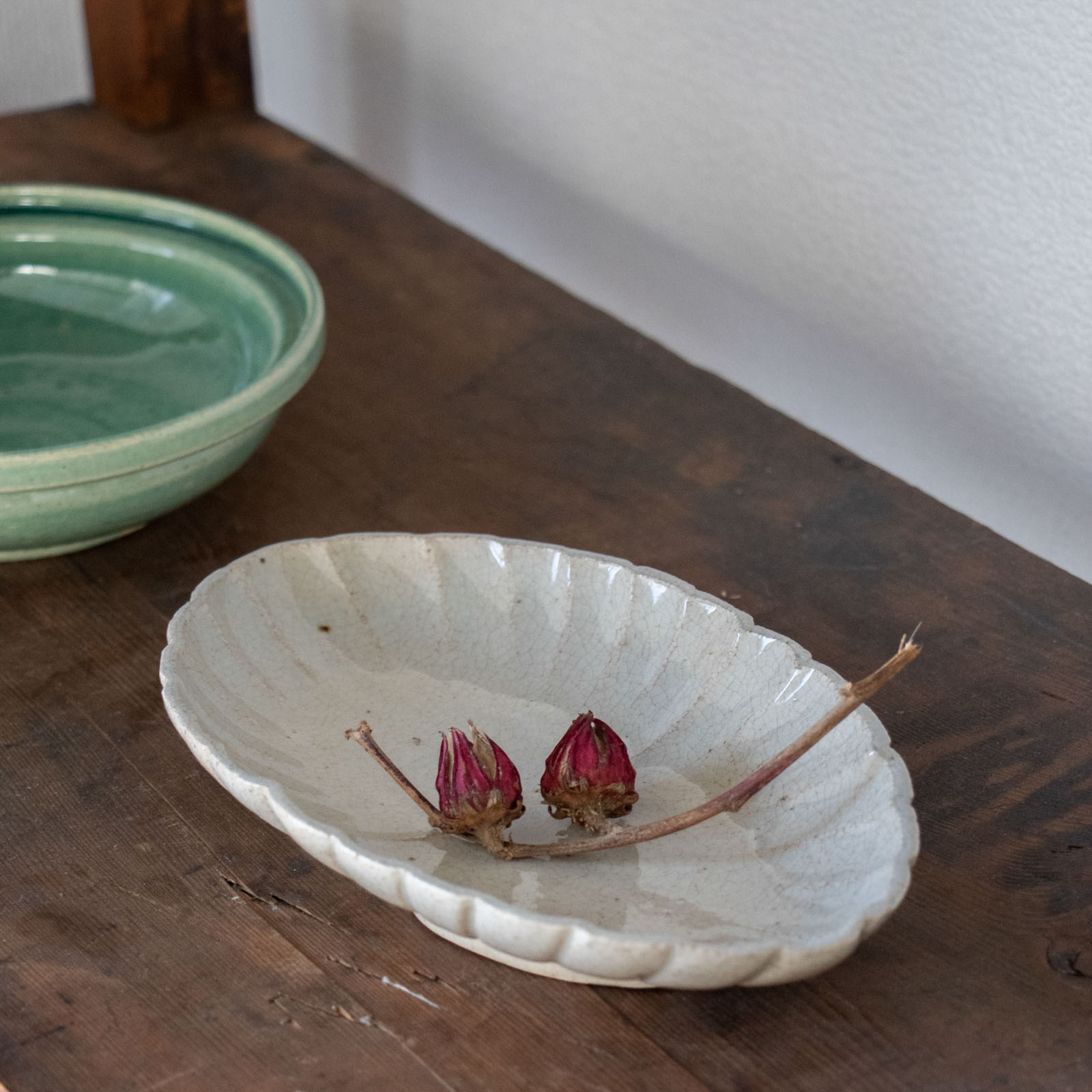 食卓を華やかにしてくれる上品な菊形の楕円皿。