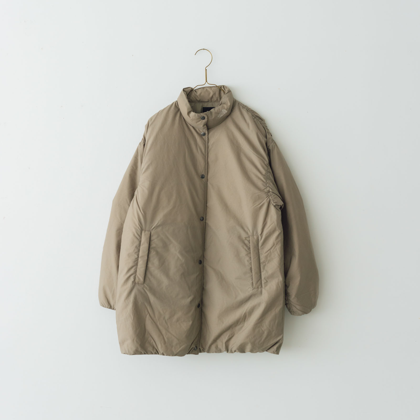 中綿入りのダウンですが、比較的薄手に仕上げているので軽やかに着ていただけます。防風性、保温性に優れたあたたかなハーフコートです。