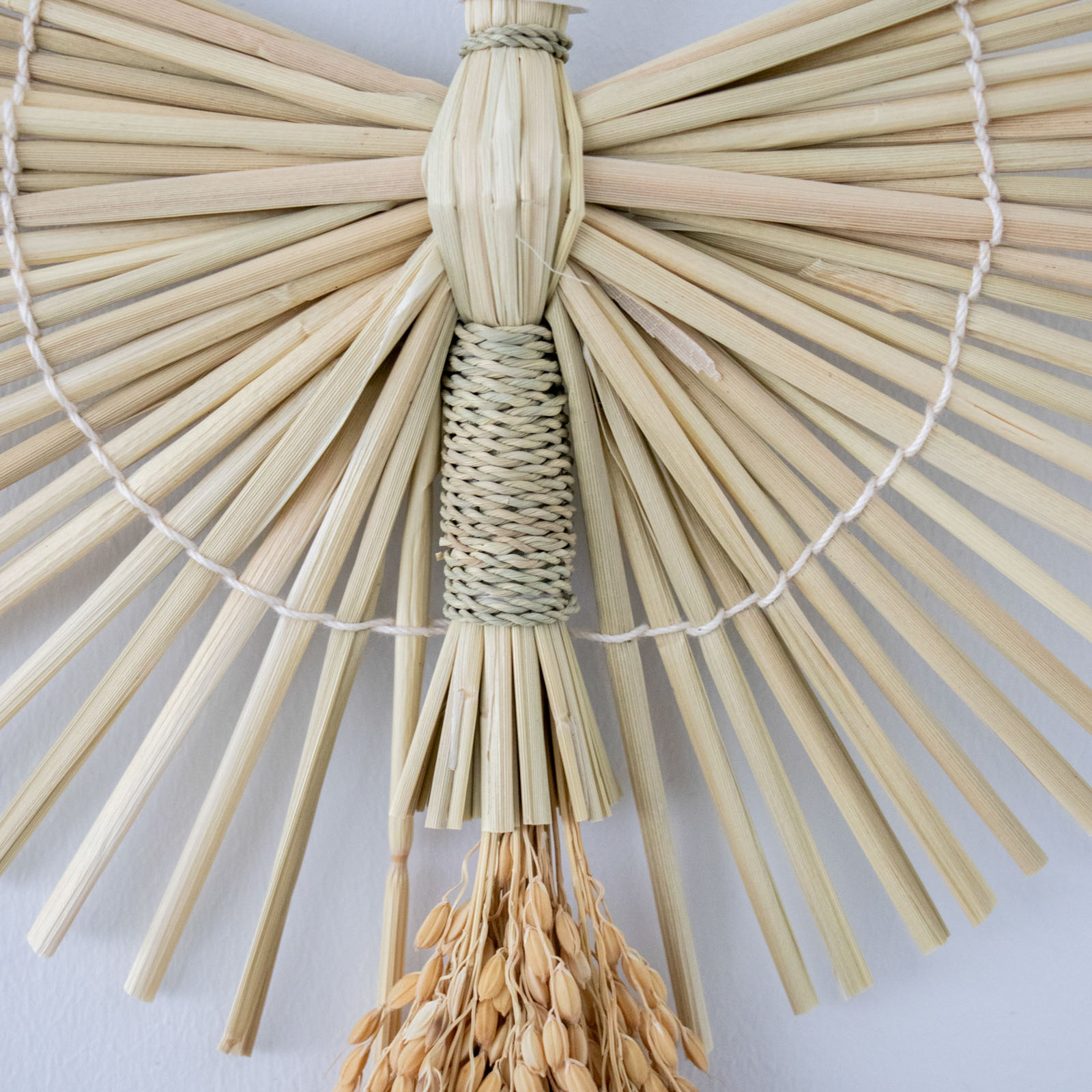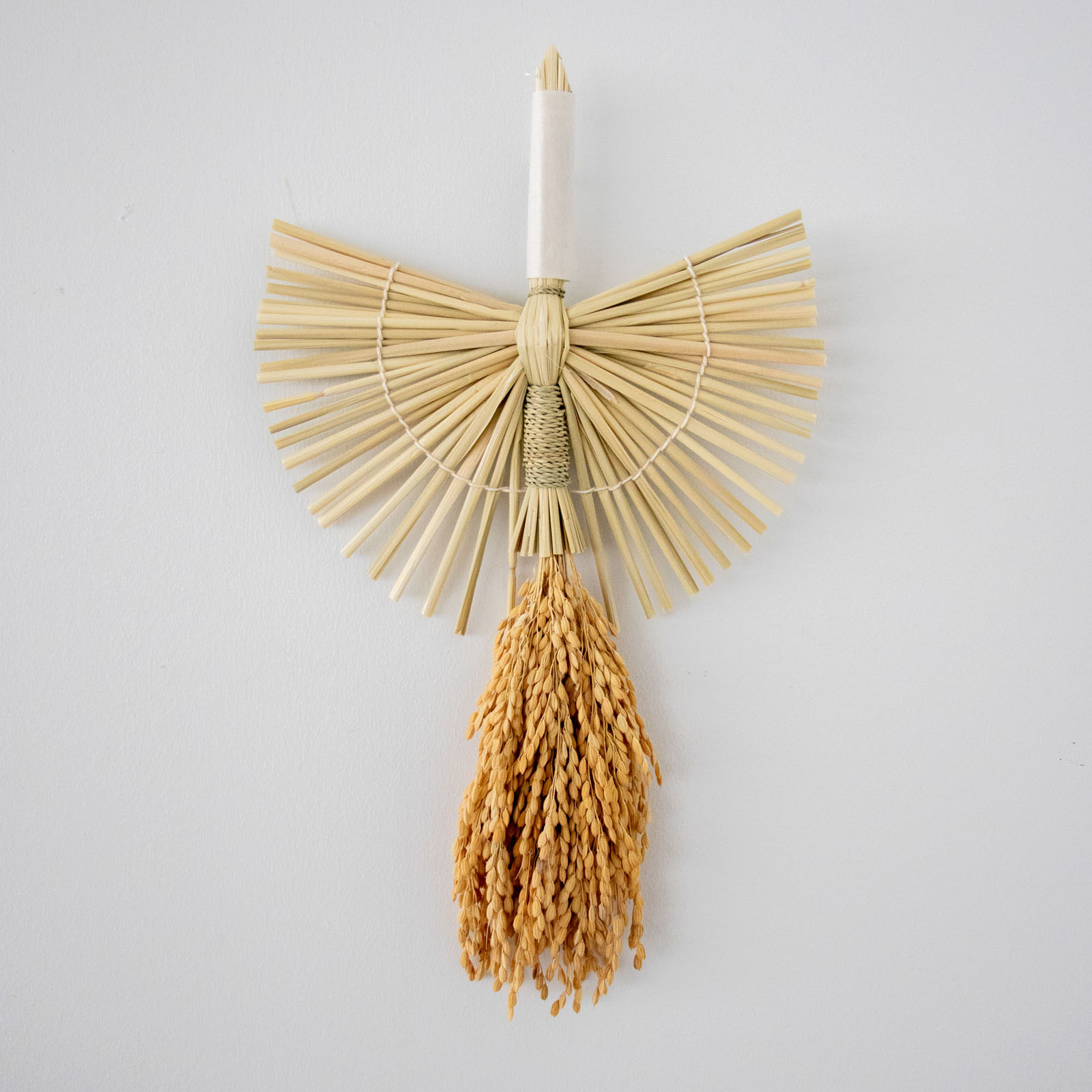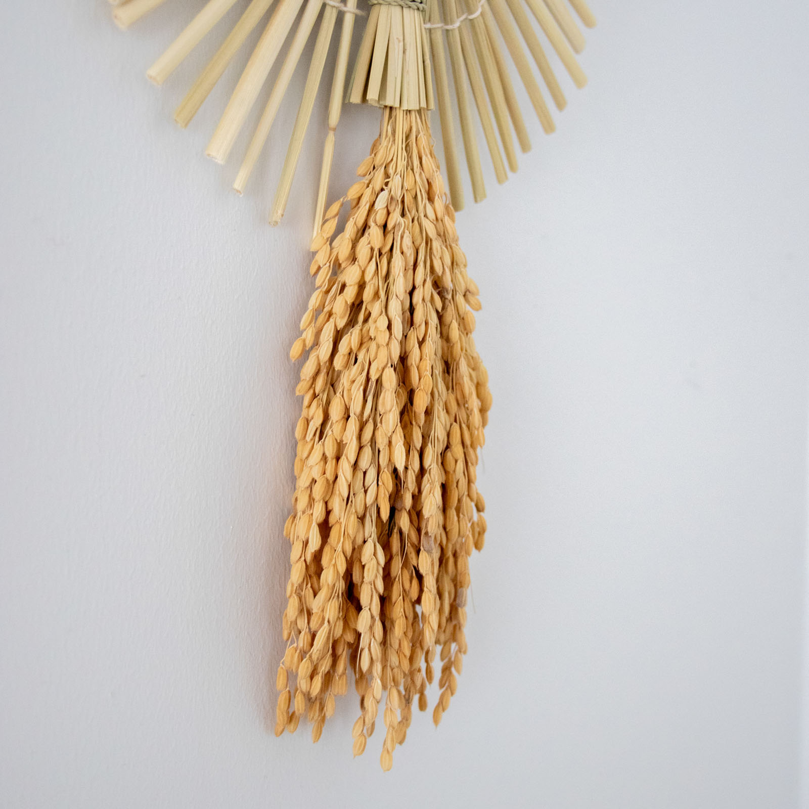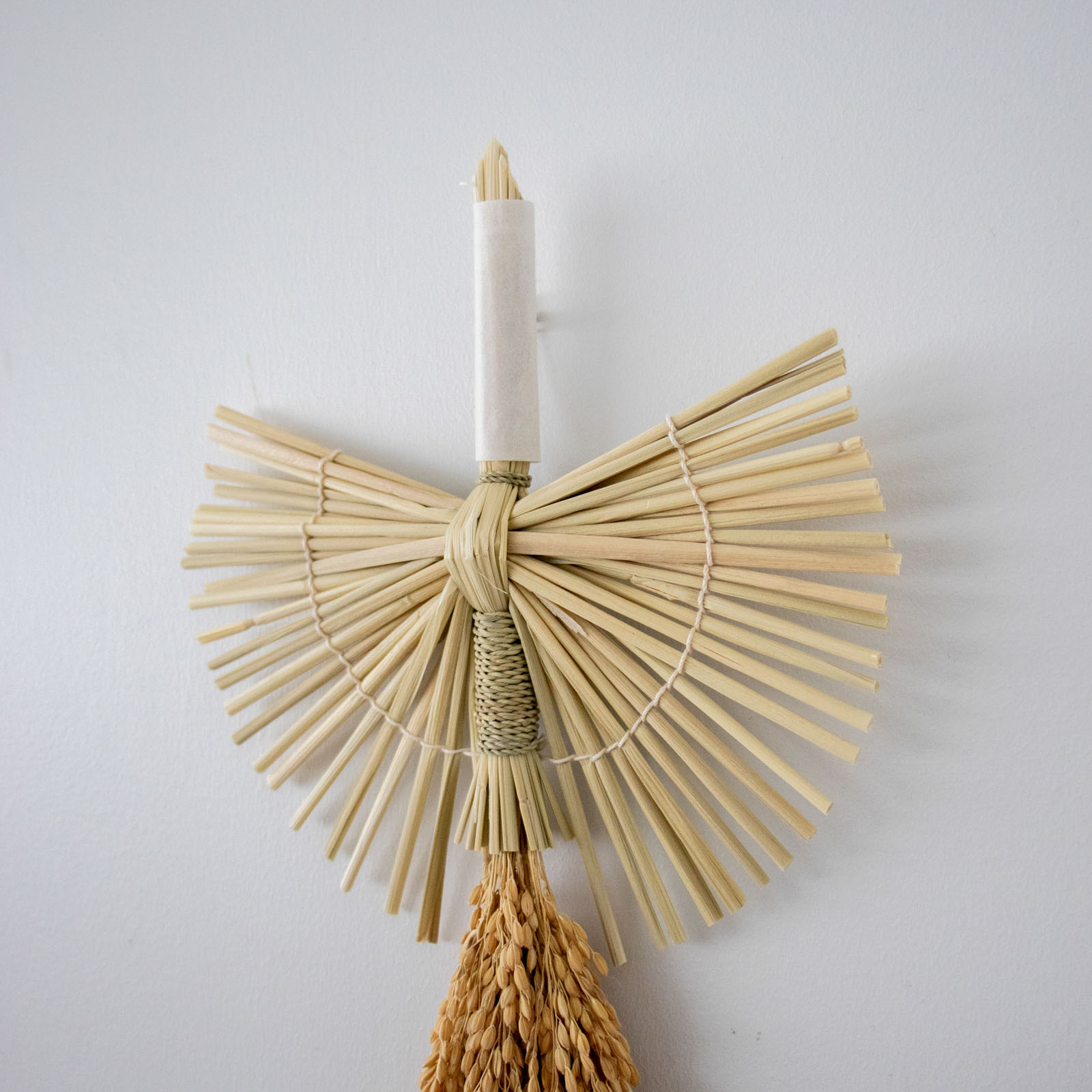 ・藁・稲穂などの天然素材を使用しているため、湿気・高温などにより変色・変形・虫食いが起こる場合があります。ご使用・保管の際は風通しの良い場所で、湿度の高い場所を避けてください。