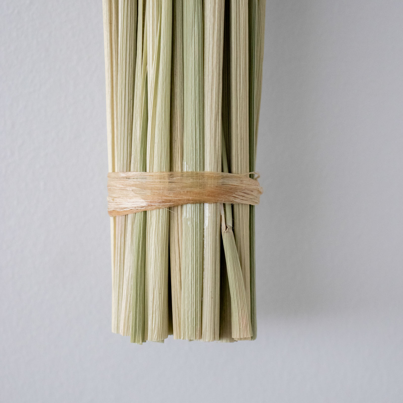 青藁:稲穂が実前の7月に刈り取られる柔らかく若い藁。時間が経つにつれ徐々に黄色い藁色に変化していきます。