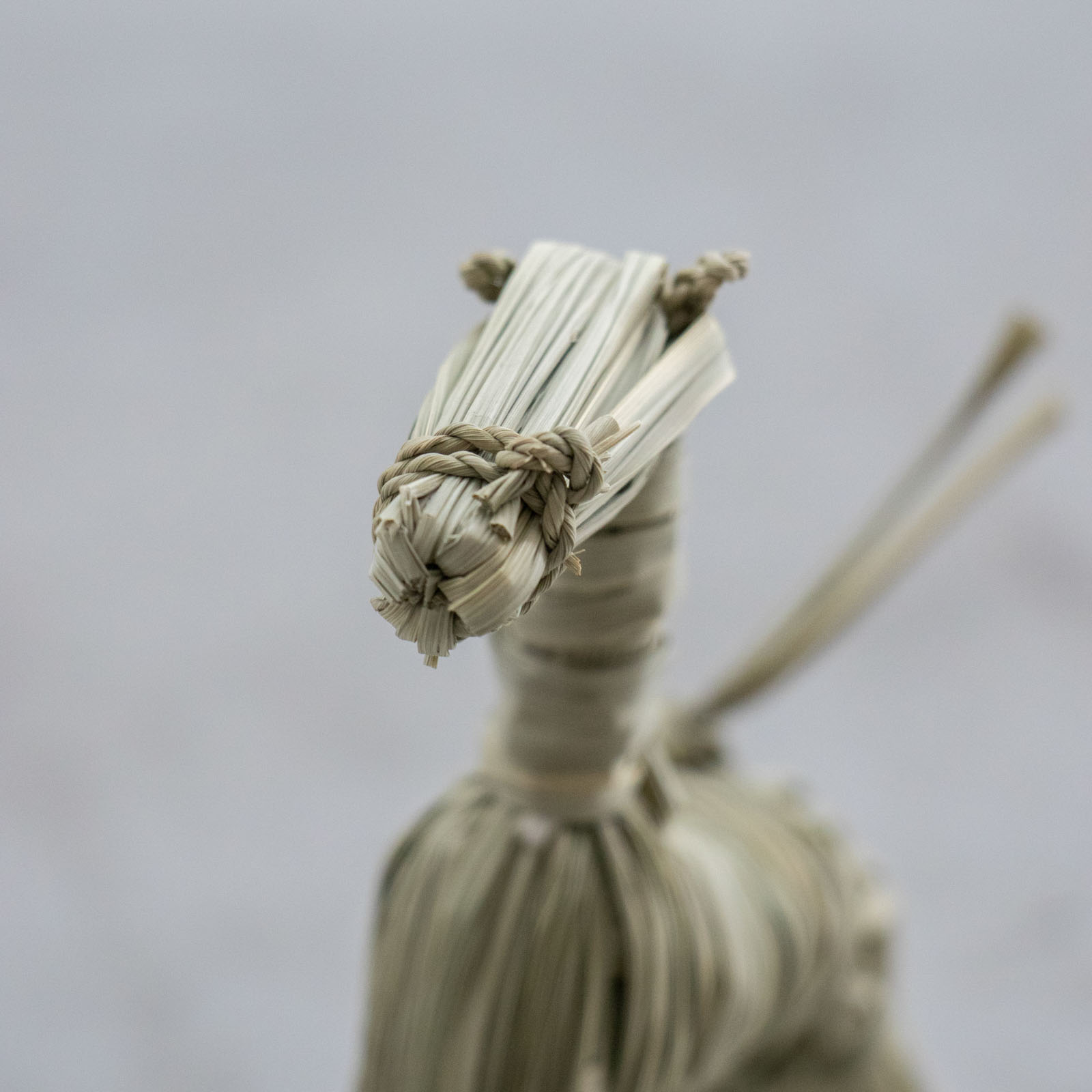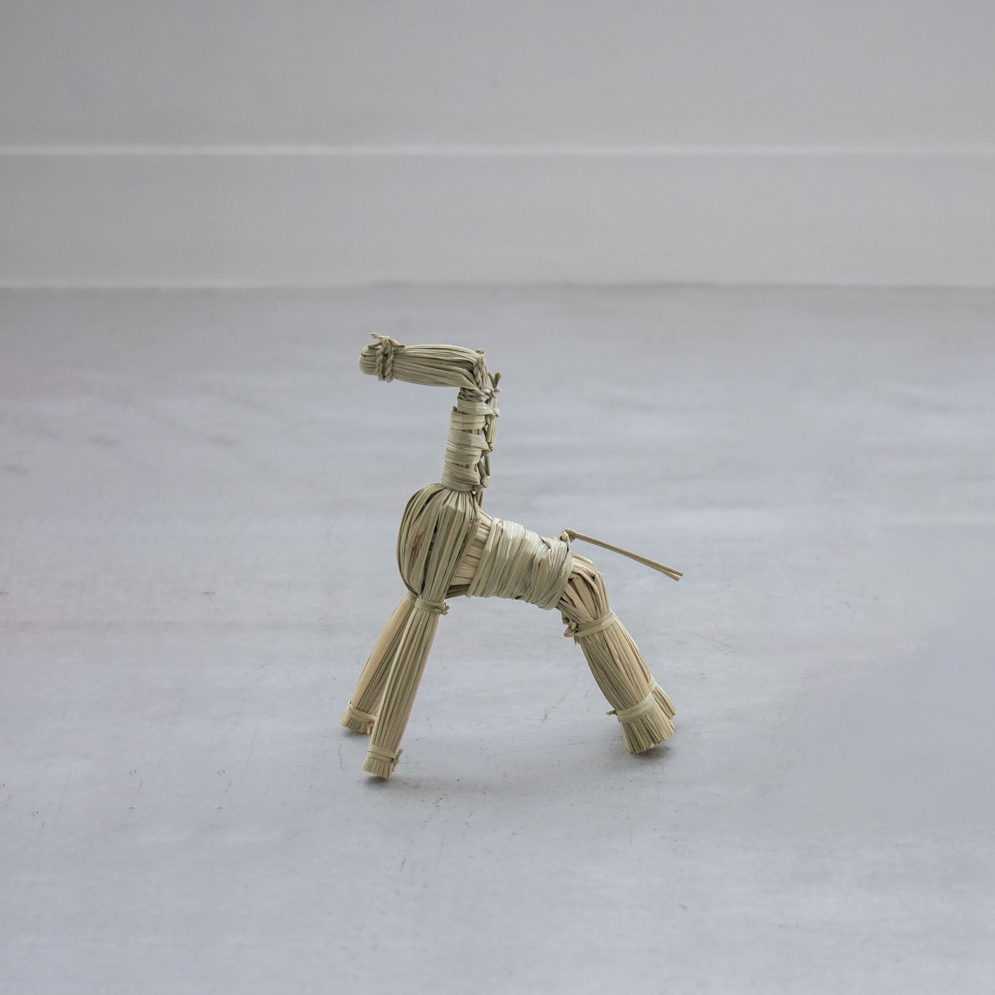 藁だけで作られたとは思えないほど精巧なつくりの「馬の置き飾り」。