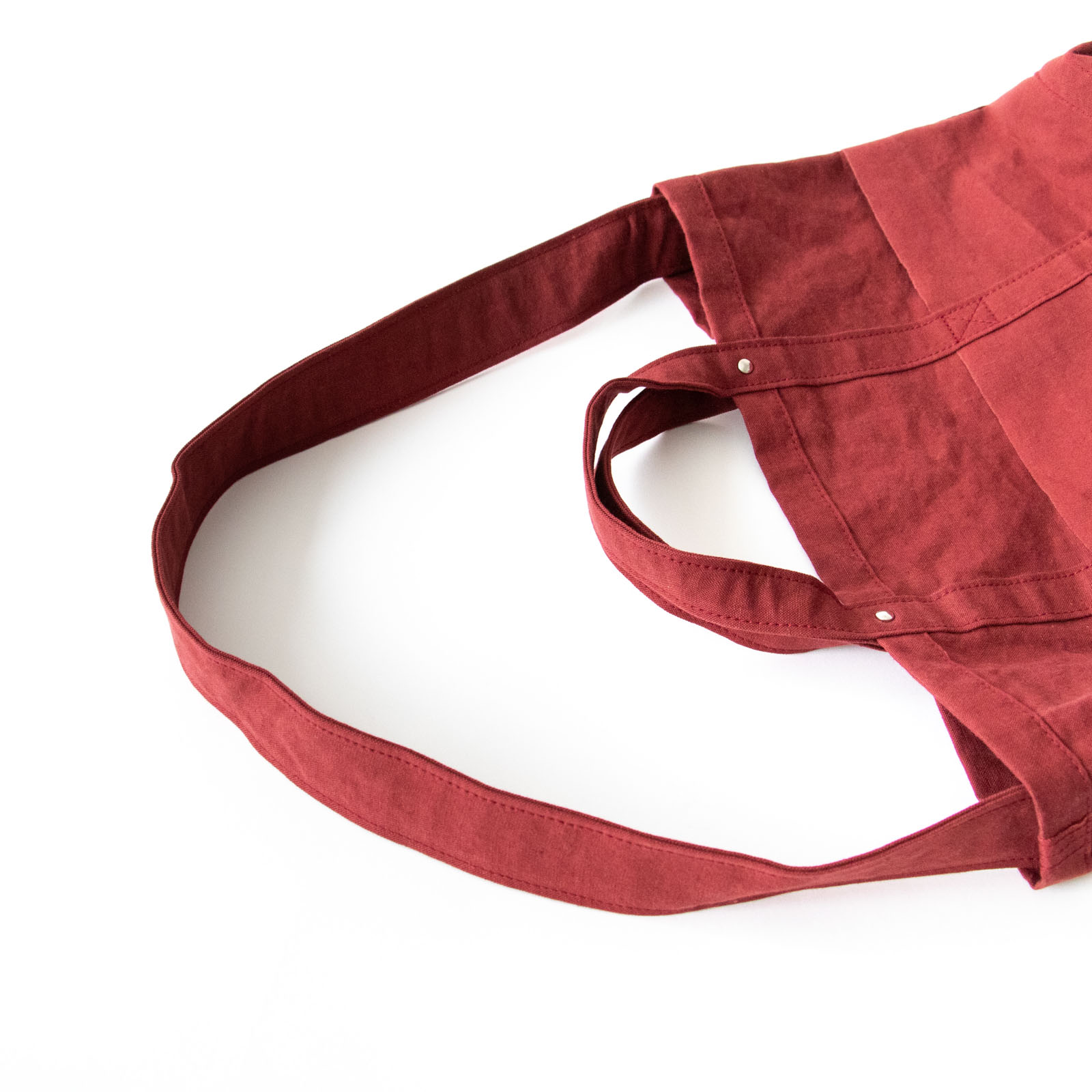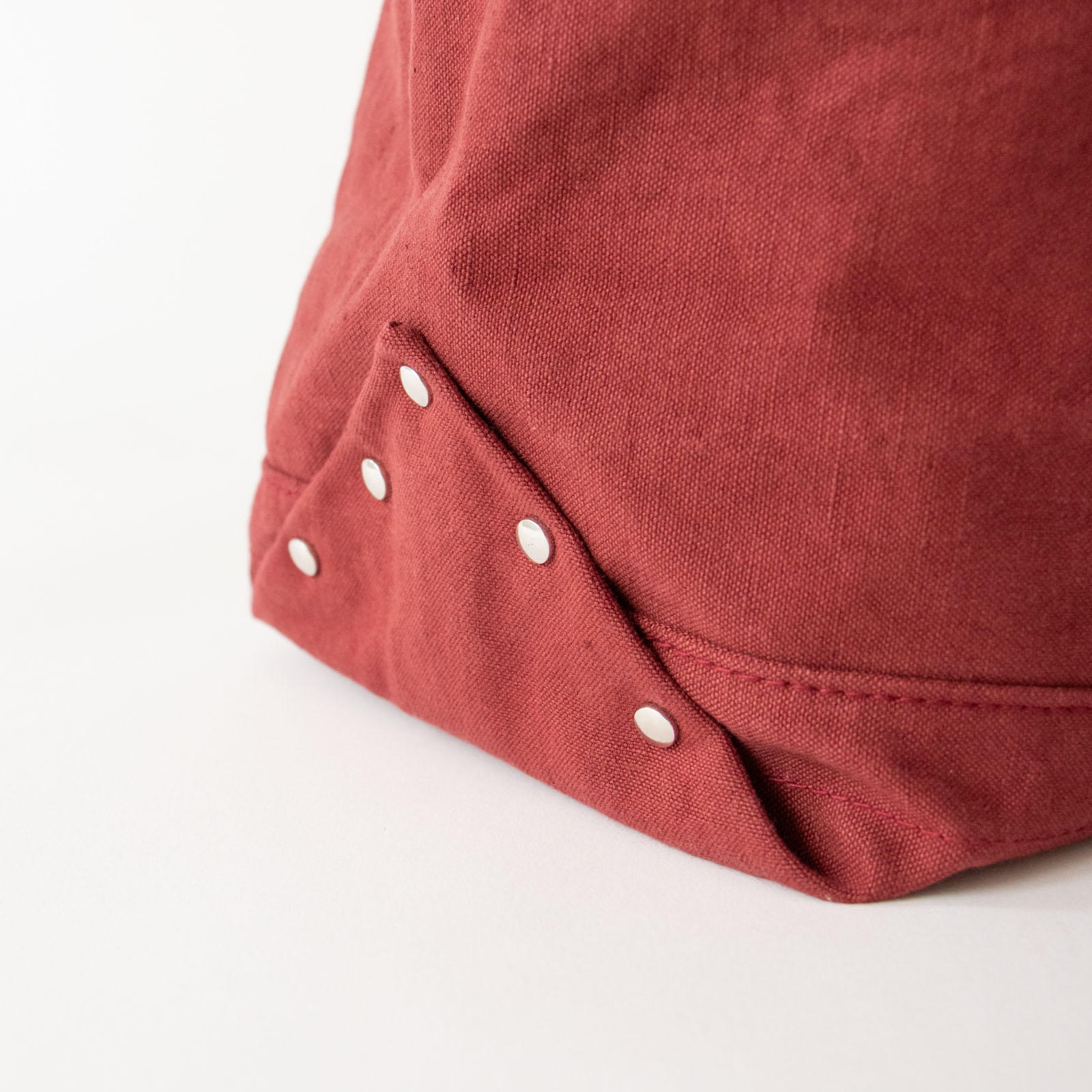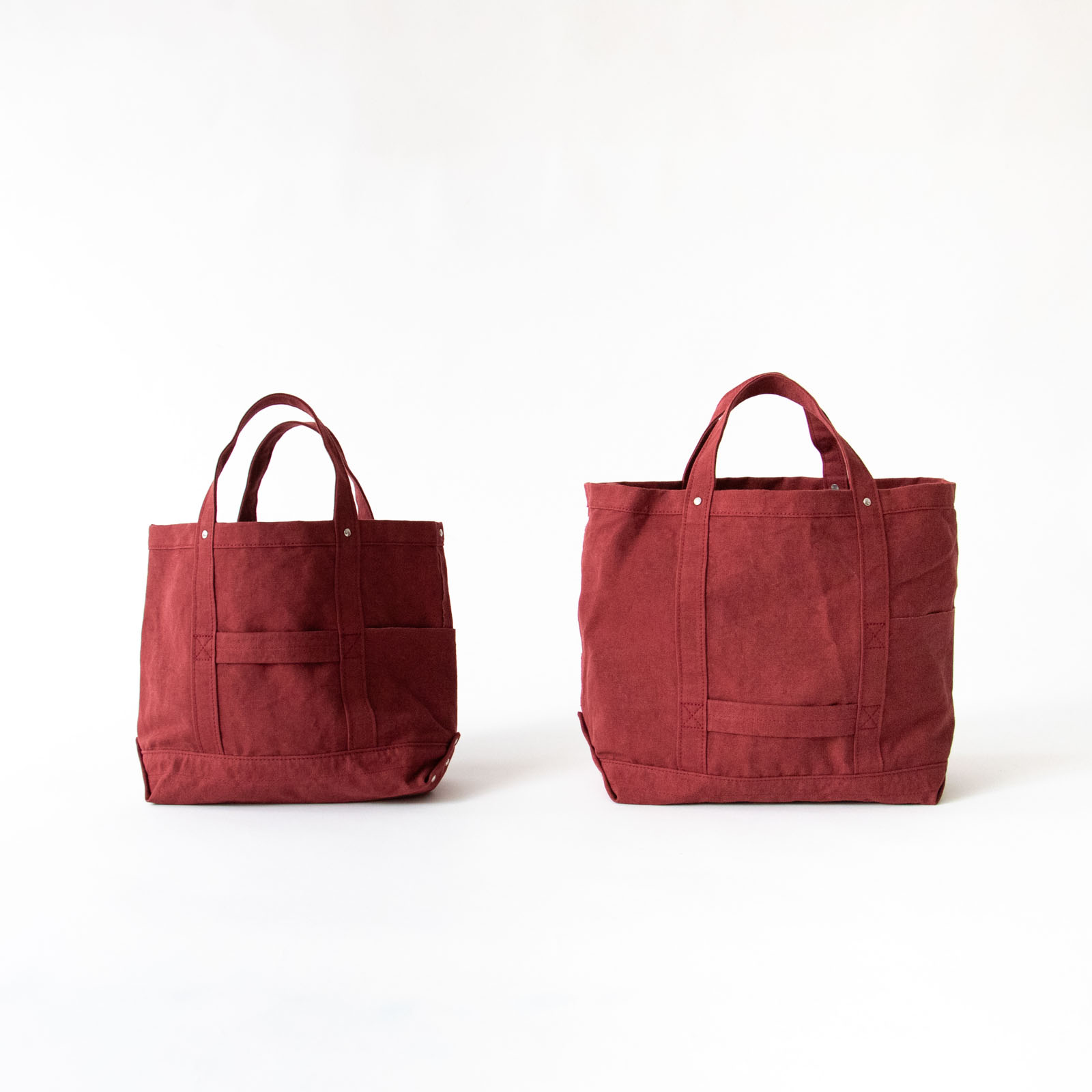 英国の庭師の使うバッグをイメージして作られた定番トートに新色が登場。くたっとした柔らかさがありながら、丈夫さも兼ね備えたコットンリネンの帆布で作られています。カラーは草木染めのレッドとブラックの2色。