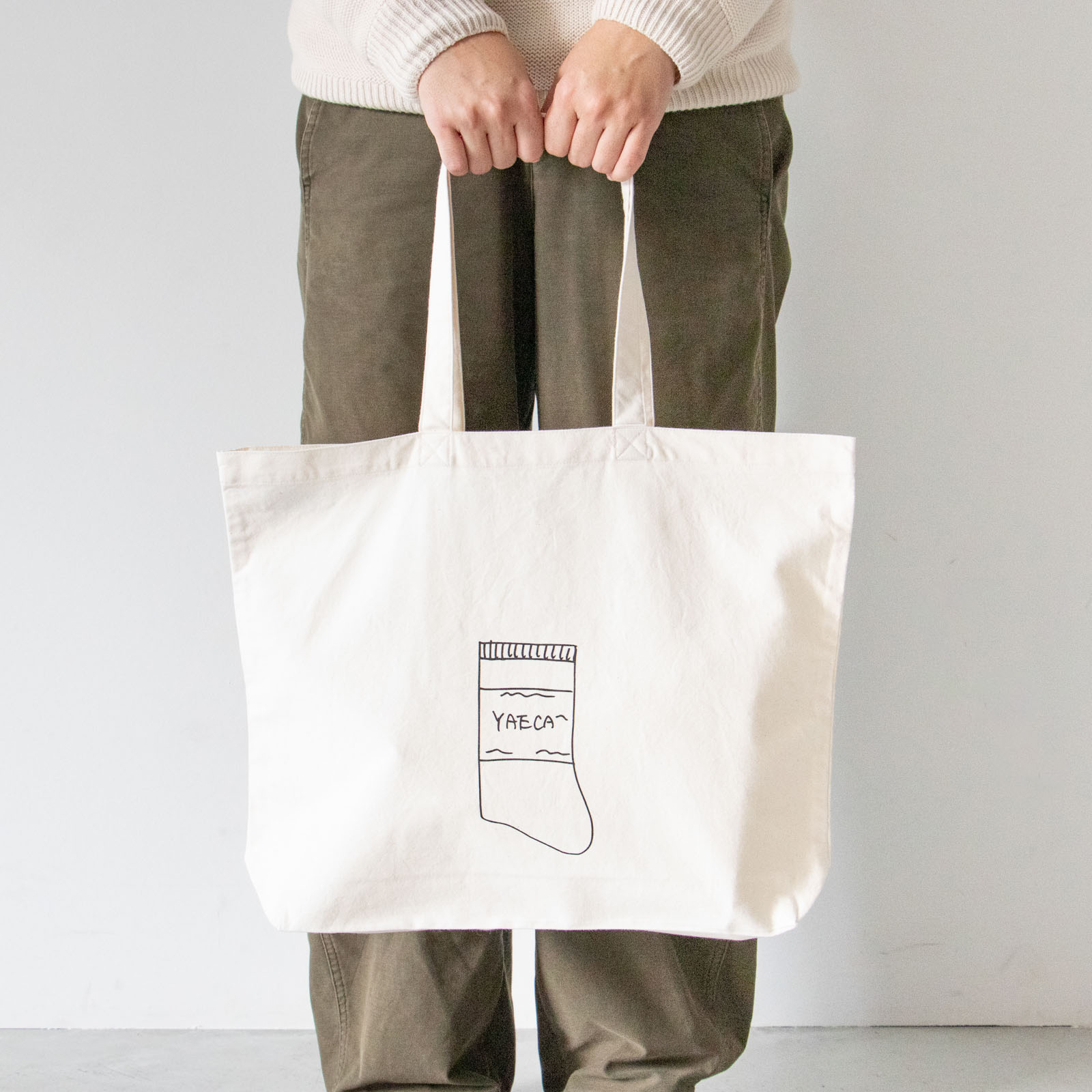 毎シーズン人気の加賀美健氏デザインによる、コットントートバッグ。今シーズンのモチーフは、なんとYAECAの定番アイテム「SHIRT」「SOCKS」「BAG」の3種類。
