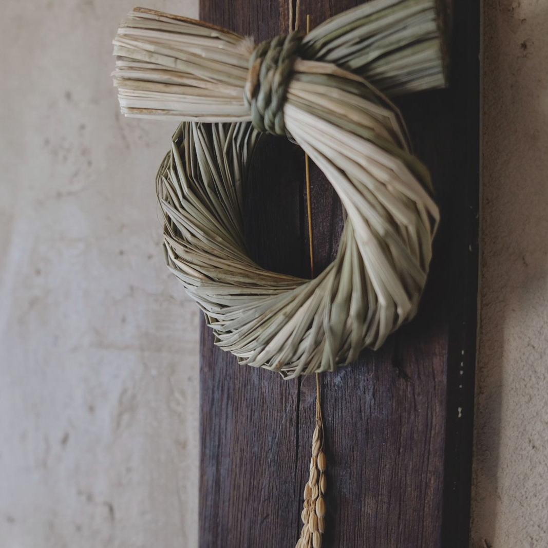 しめ飾りは使うほどに青々とした香りと色があめ色に変化し、使うごとにツヤが出てきます。自然素材のもつ経年変化も合わせてお楽しみください。