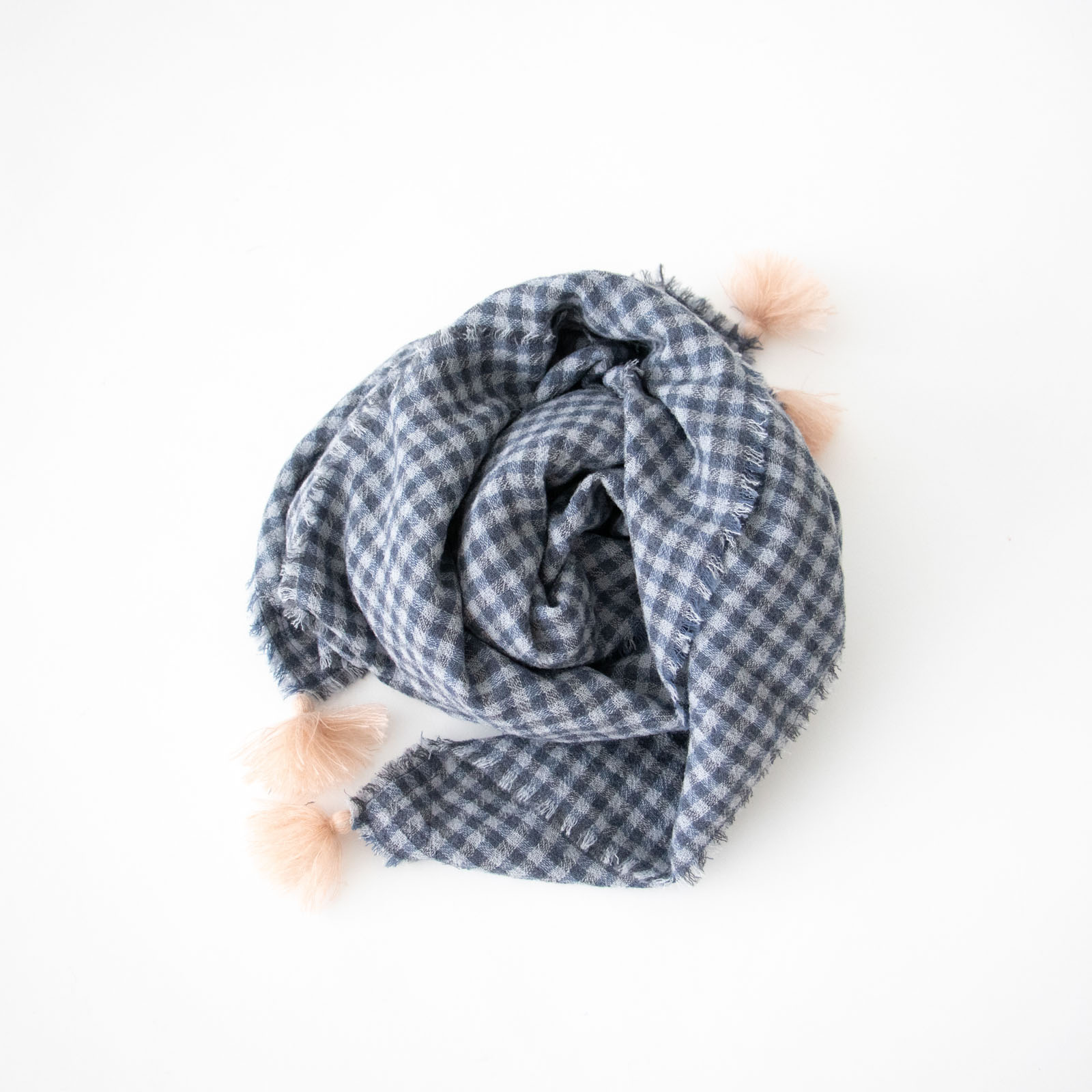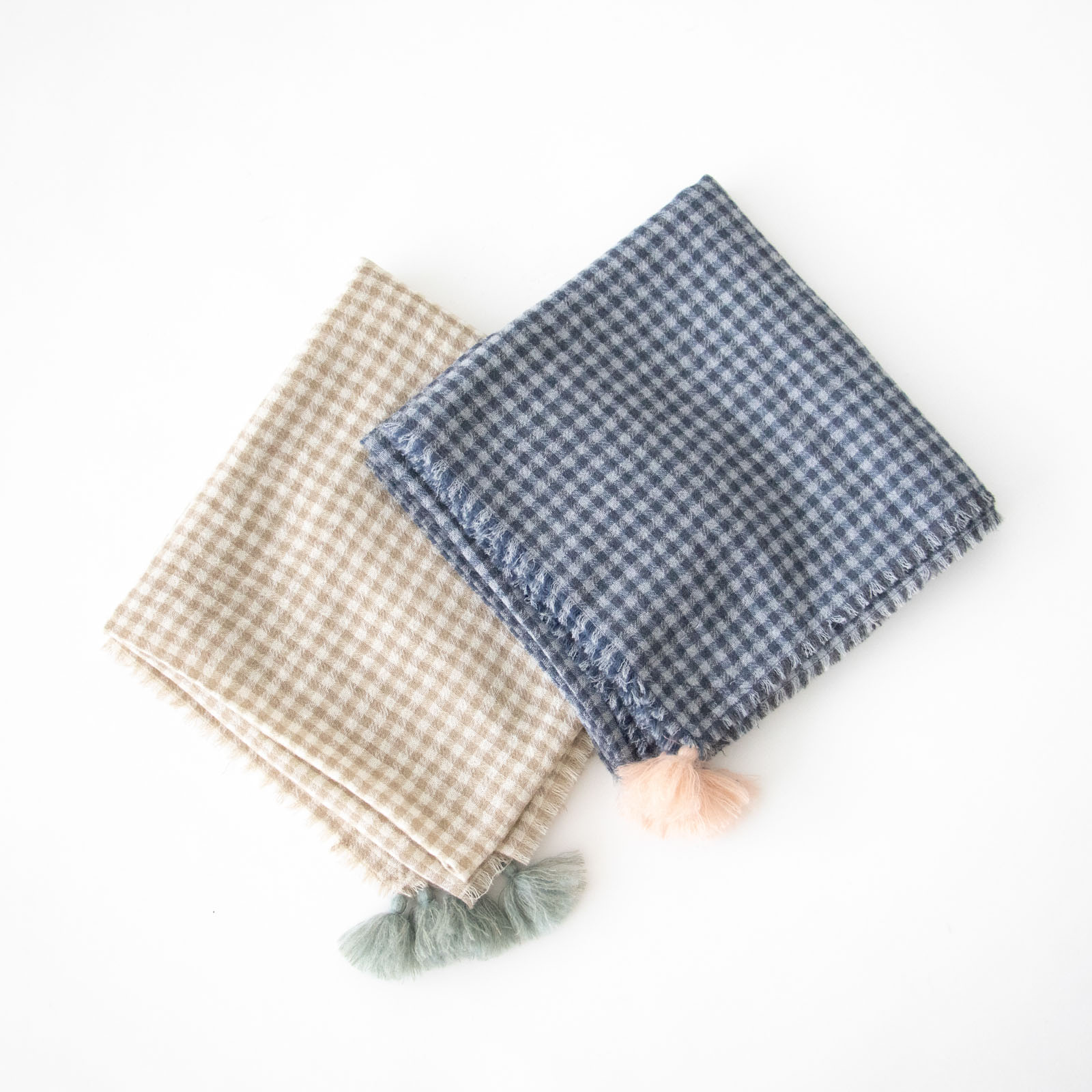 冬のスタイリングに程よいアクセントをくれる大判ストール。派手さを抑えたギンガムチェックは普段着からお出かけまで馴染みます。