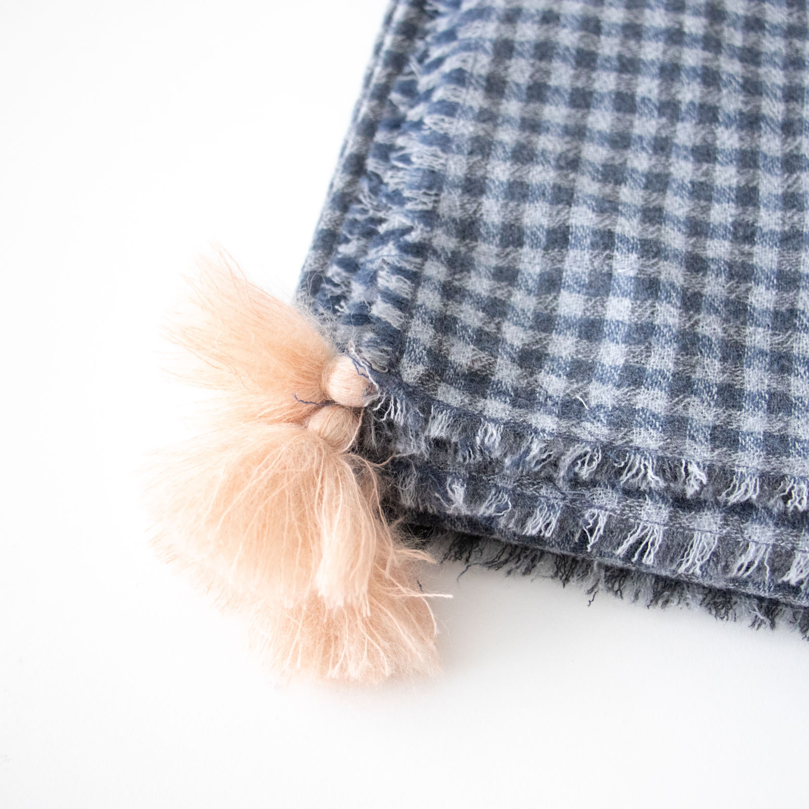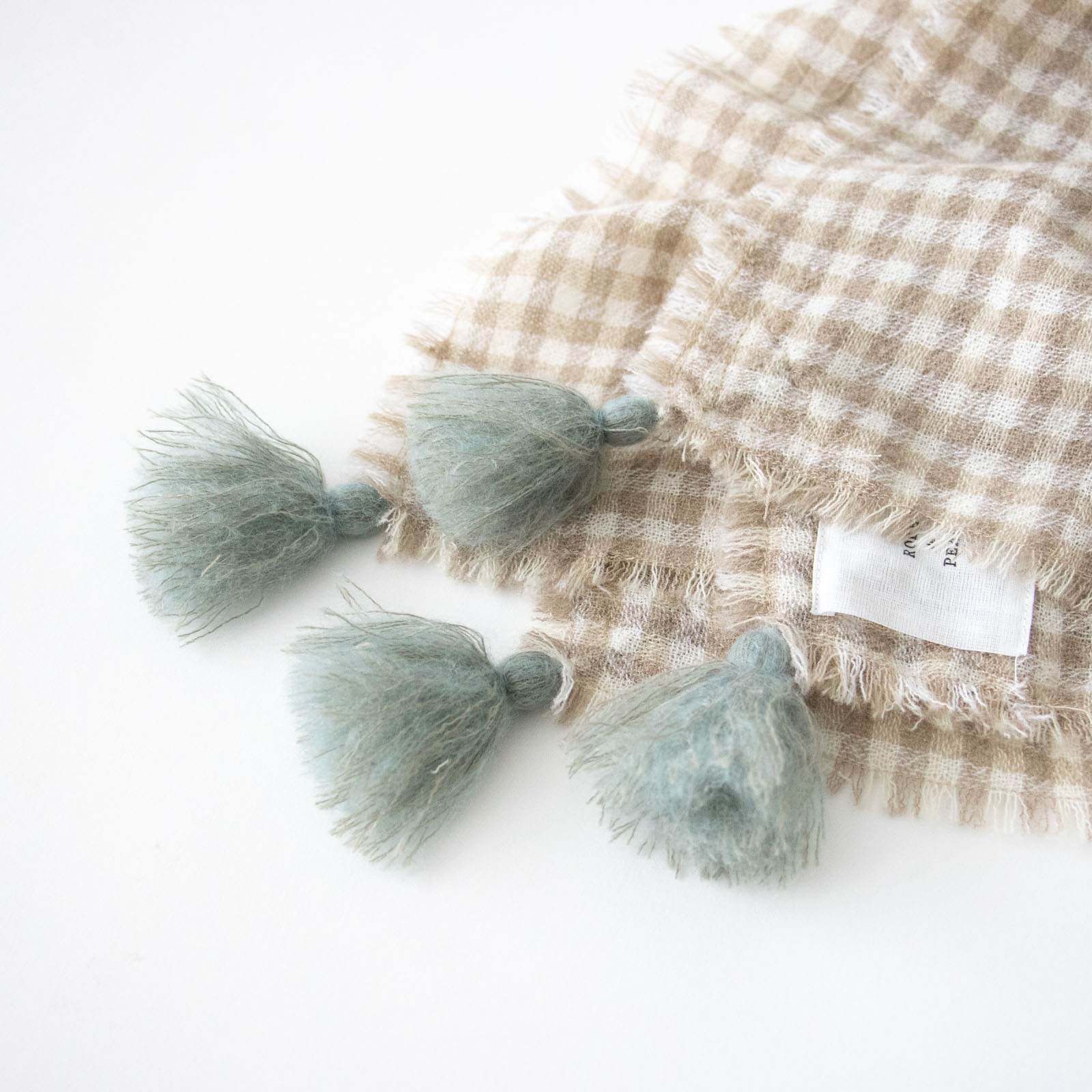 ポイントになるのは、四隅についたタッセル。巻いた時にかわいらしいアクセントになってくれます。