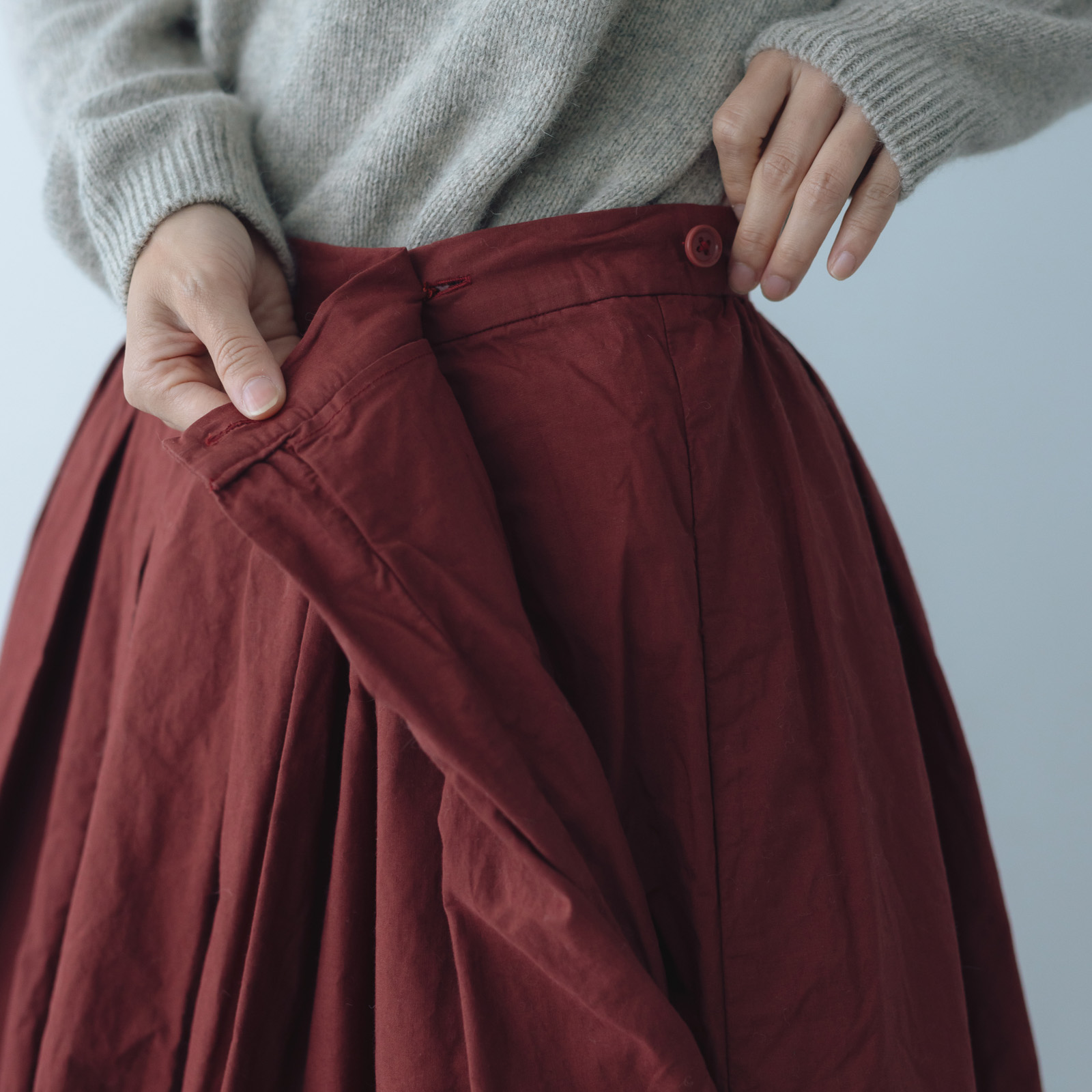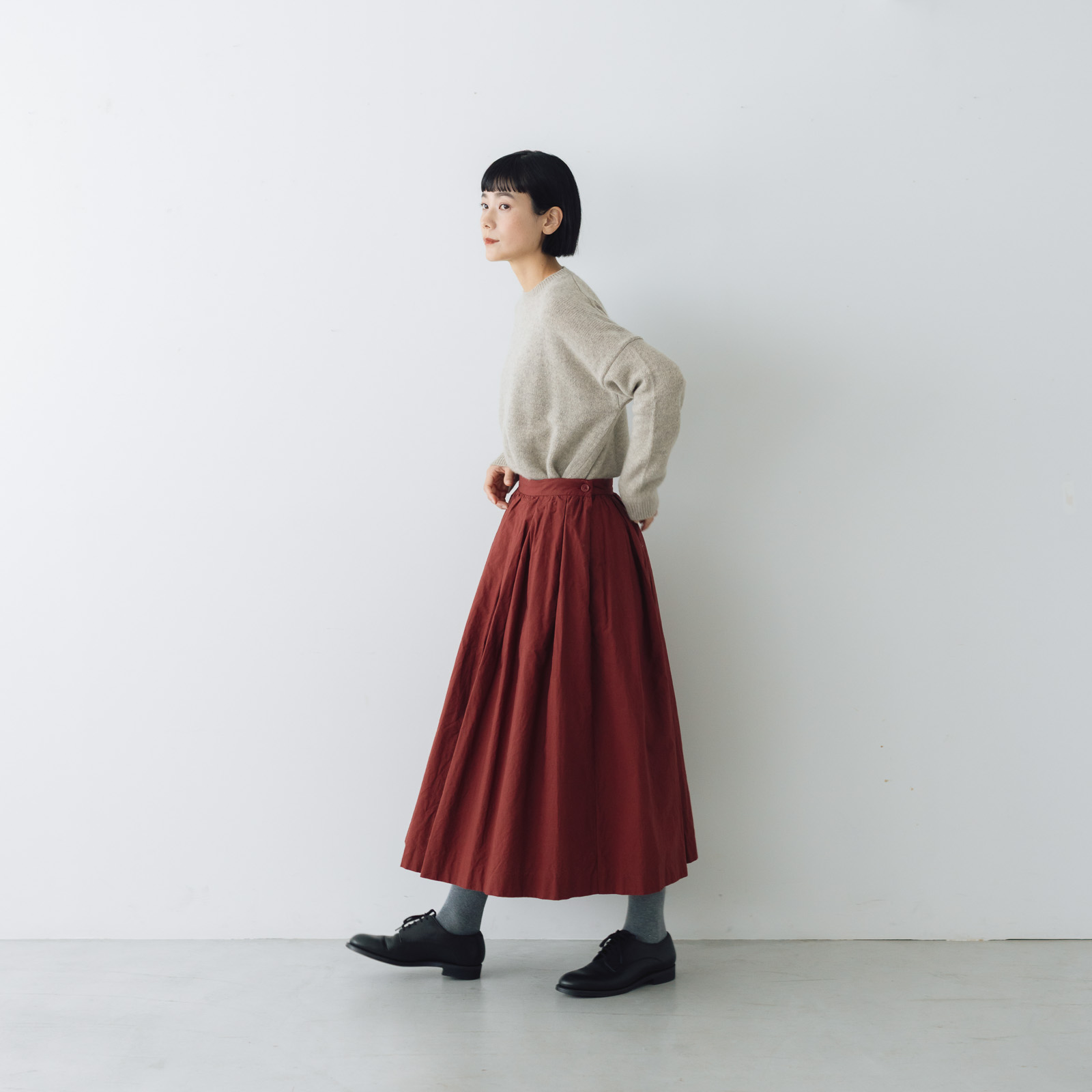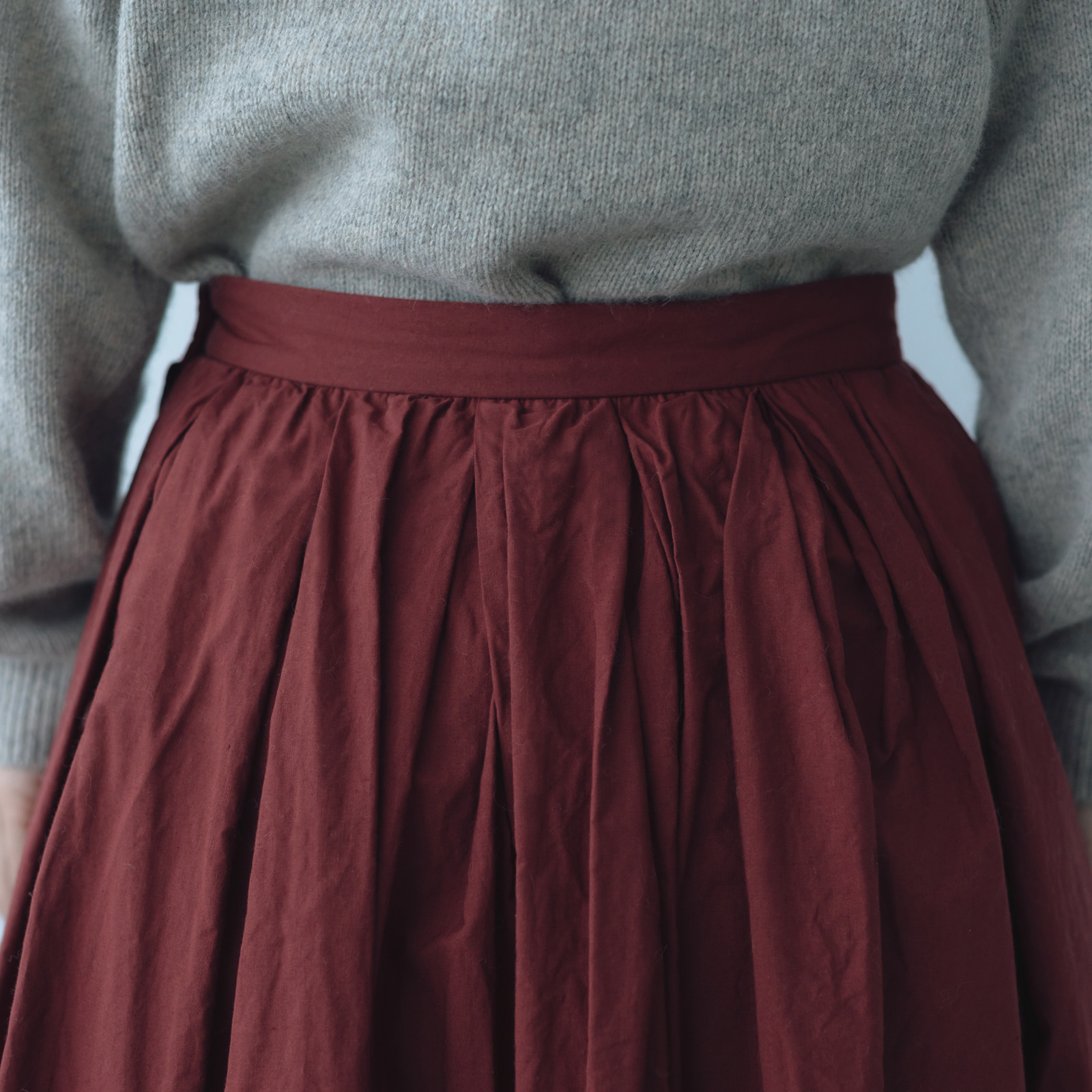 コットンラミー生地で作られた表情豊かなギャザースカート。コットンの丈夫さにリネンの軽さと光沢感が加わり、ハリのある仕上がりです。