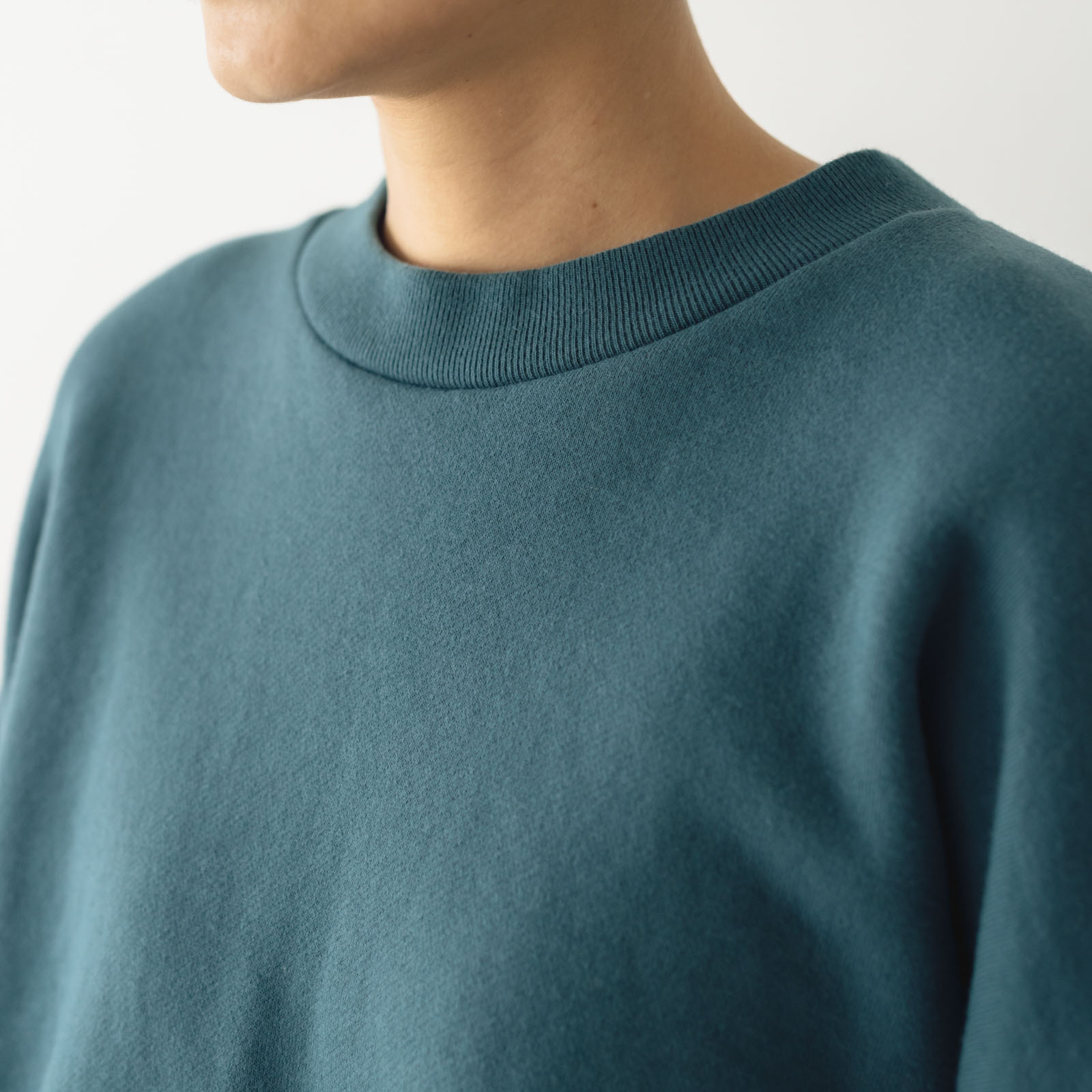 そのスウェット生地を肩の切り替え無しのドルマンスリーブデザインにしてあり、腕の動きによってそのシルエットを楽しめます。