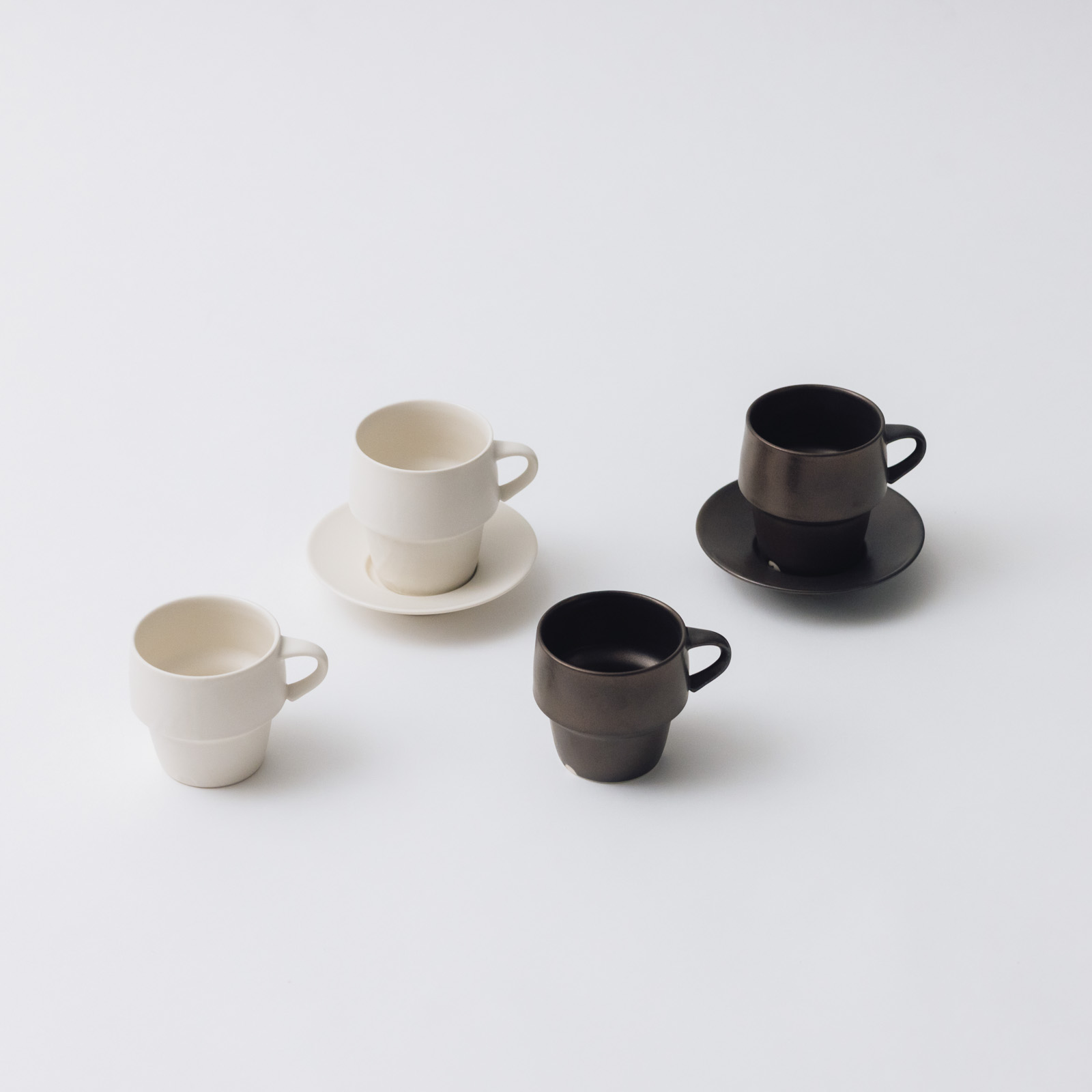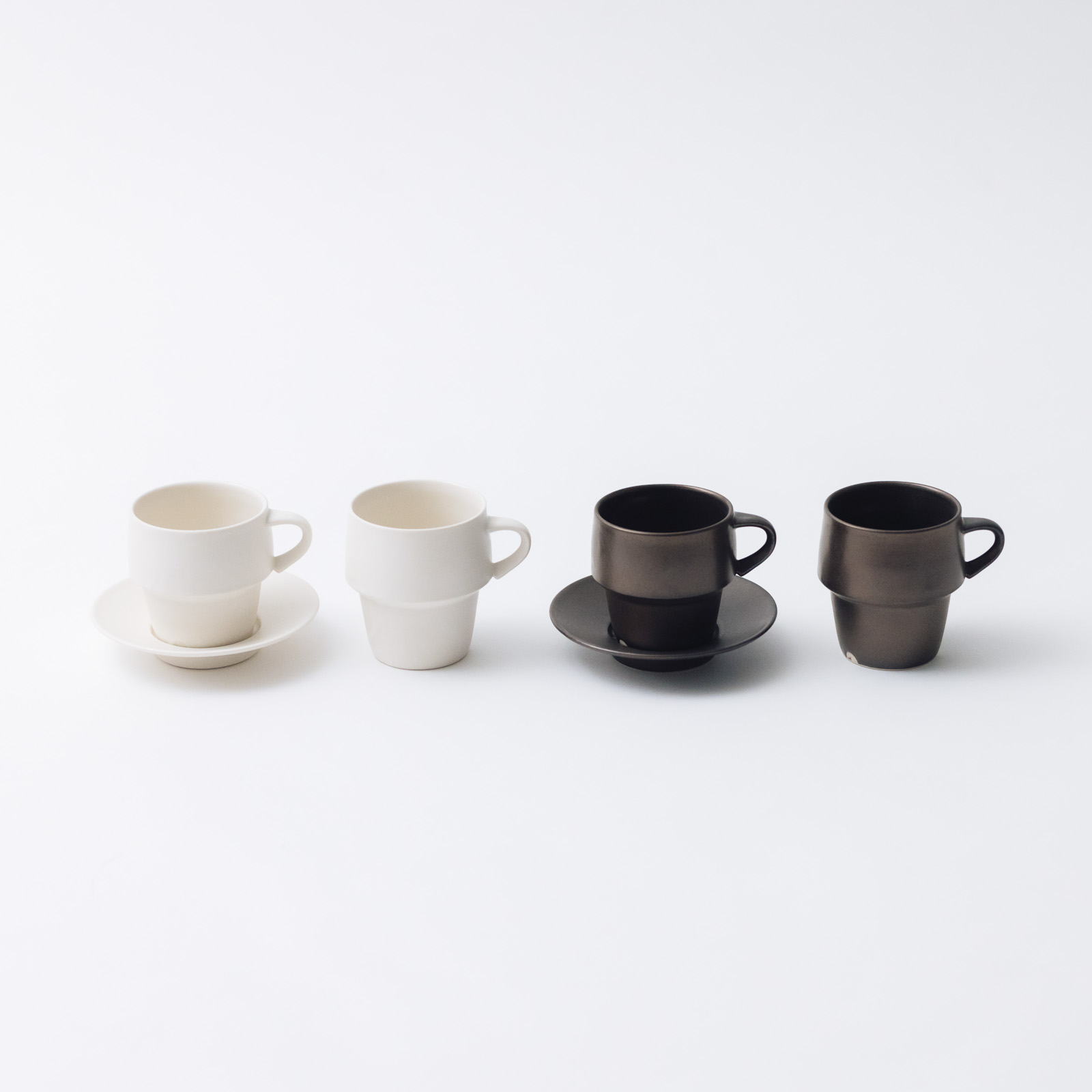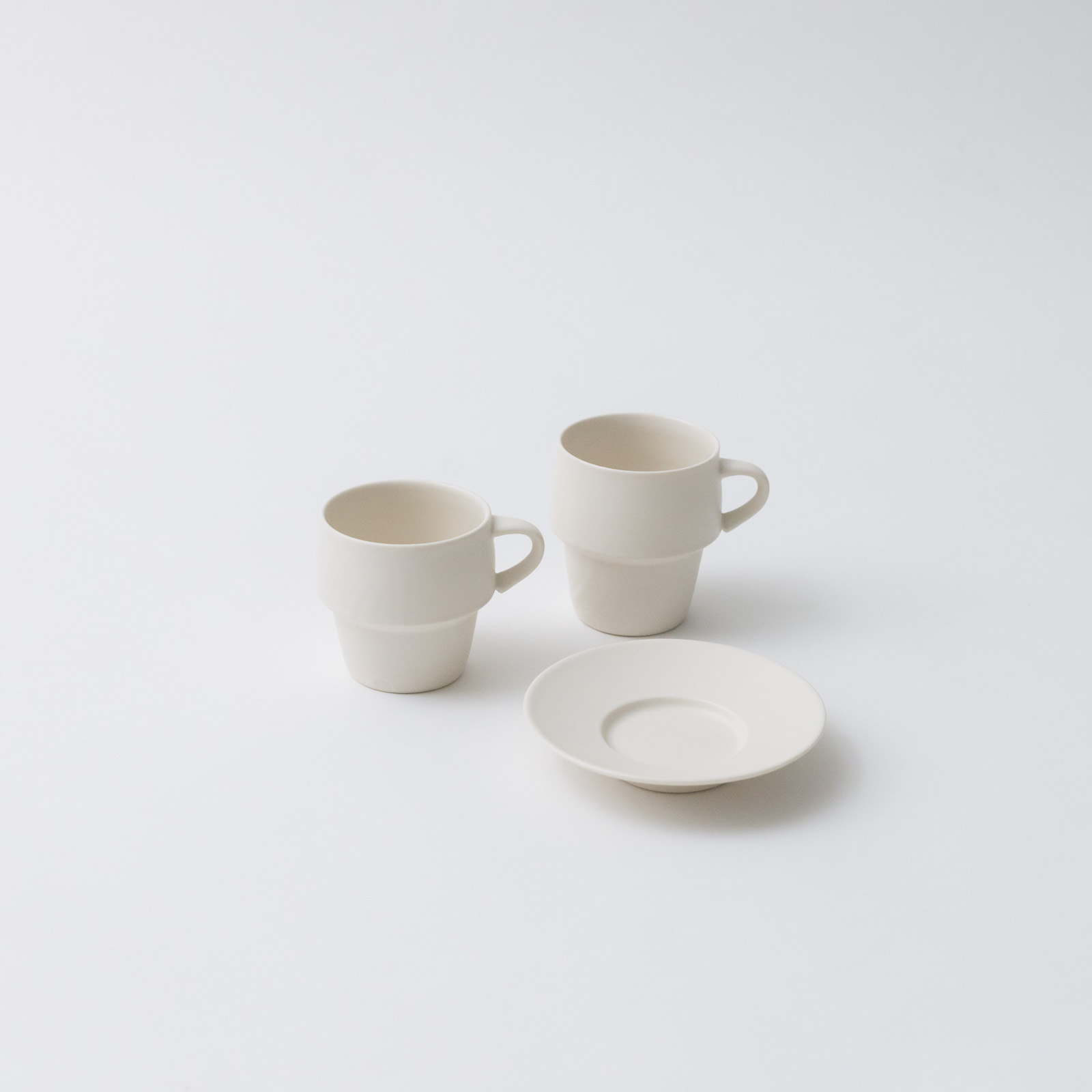 特徴的なフォルムは、スタッキングできるという機能的な側面も。食器棚にも省スペースで収まってくれます。