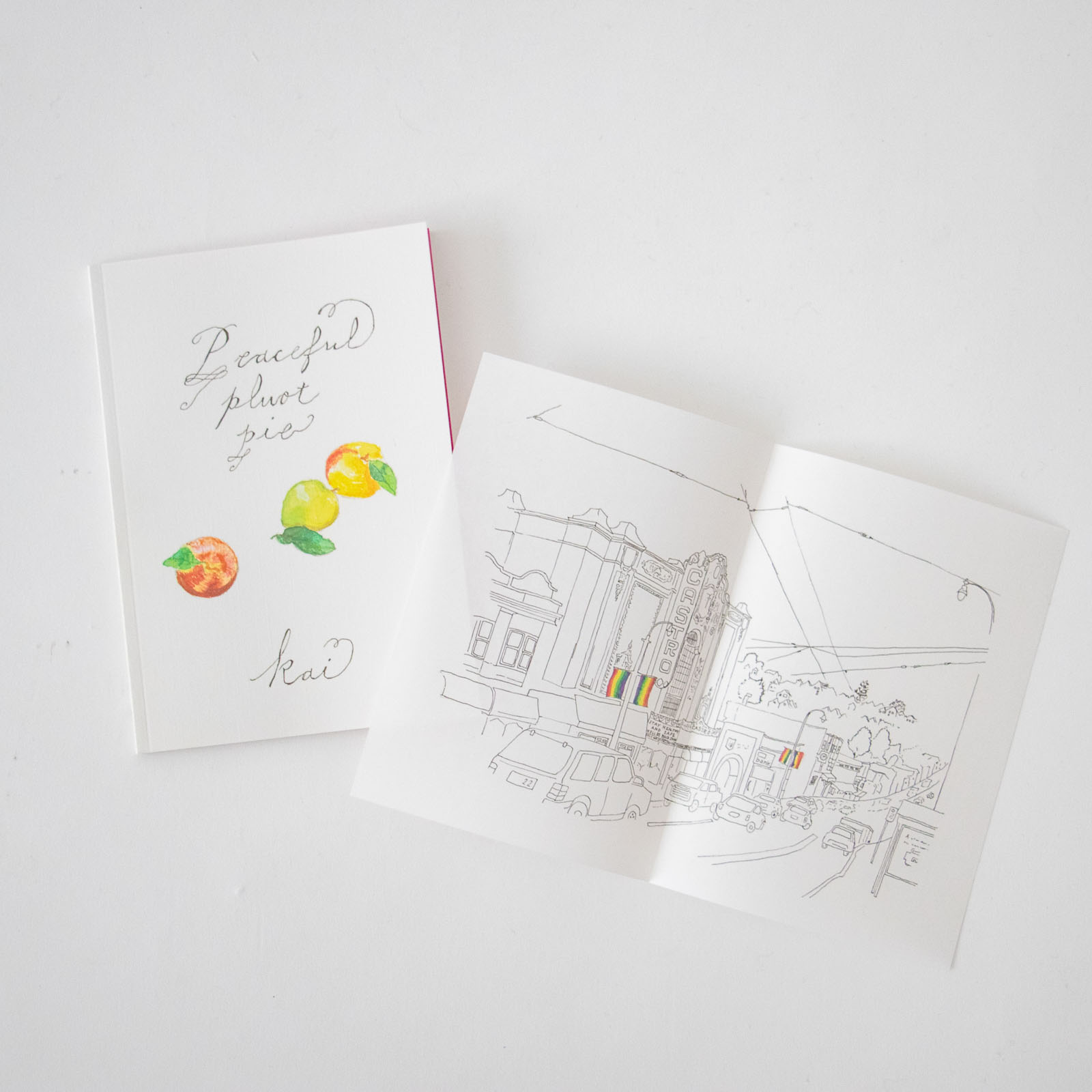 表紙のイラストと挿絵は、kaiさんのパートナーで、共に西海岸を旅したくしまけんじさんによるもの。繊細な線で描かれるバークレーの街並みや景色が、物語の余韻を深めています。くしまけんじさんのイラストのミニポスターが同封されています。