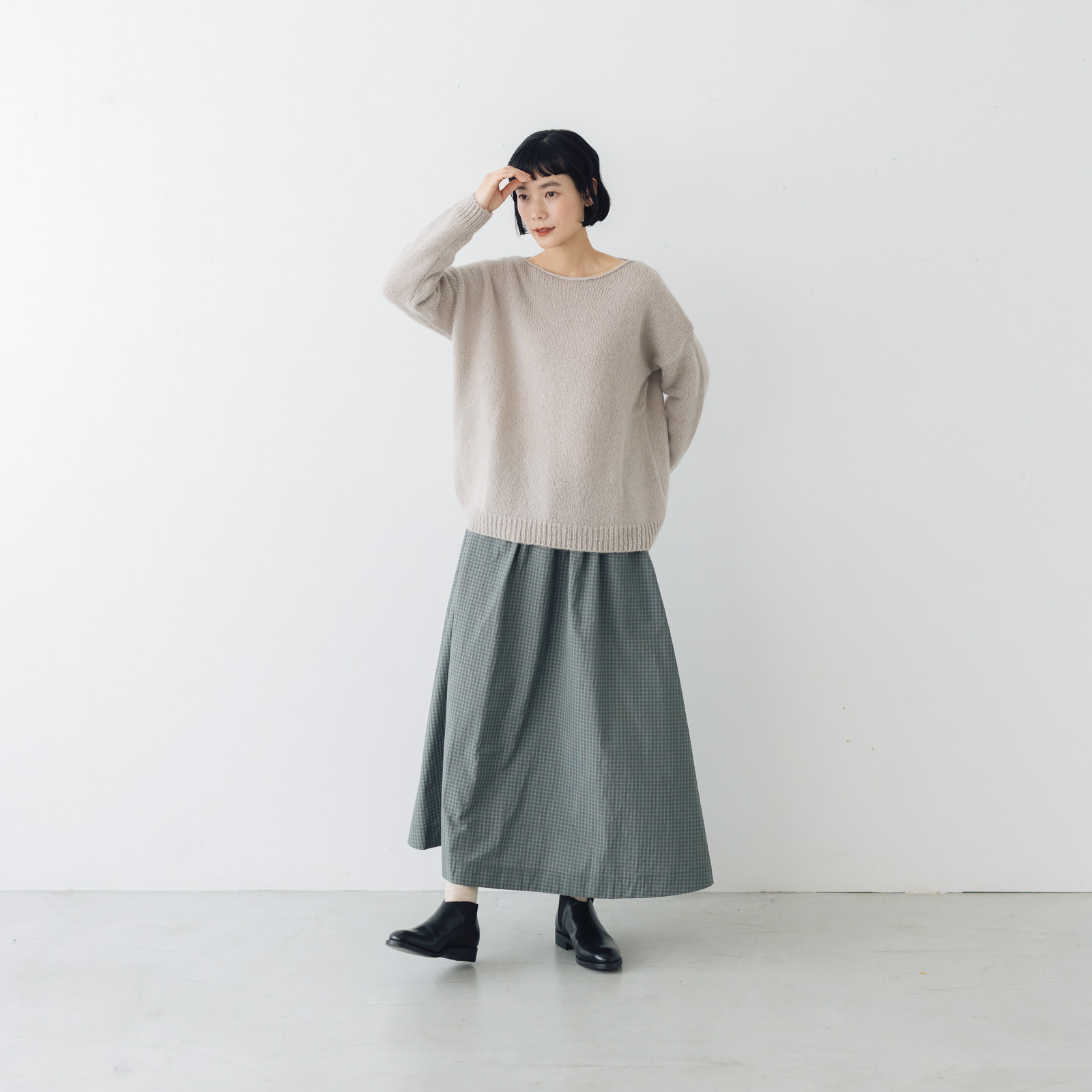 同じ素材のブラウス「Yoli Check simple blouse チャコールグレー」と合わせるワンピースのようなスタイリングもおすすめ。