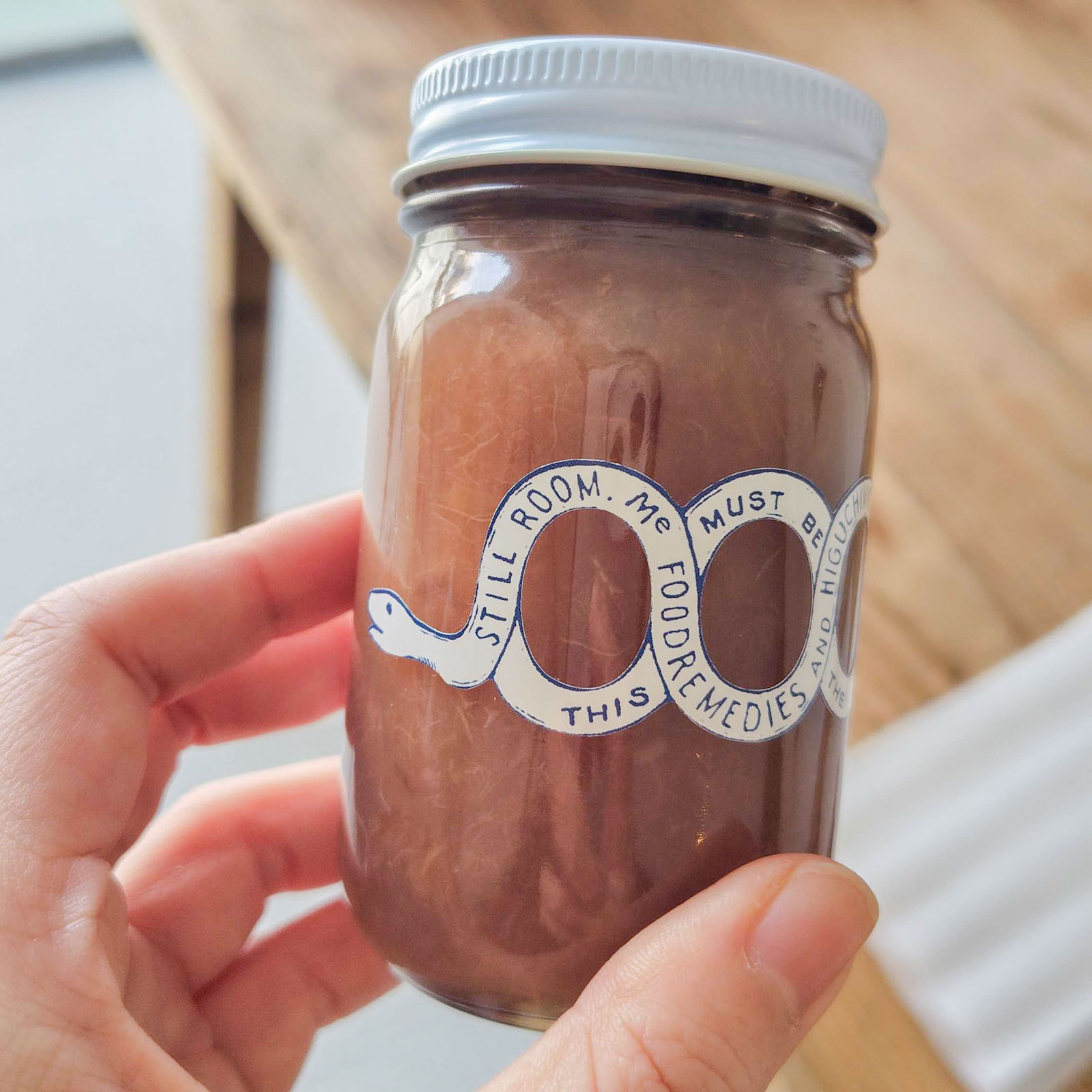 foodremedies長田佳子さんが届けてくれた、減農薬栽培で育てられた原田桃園の桃を贅沢に使った「MINAMImuku(南向)」の桃のピュレ。