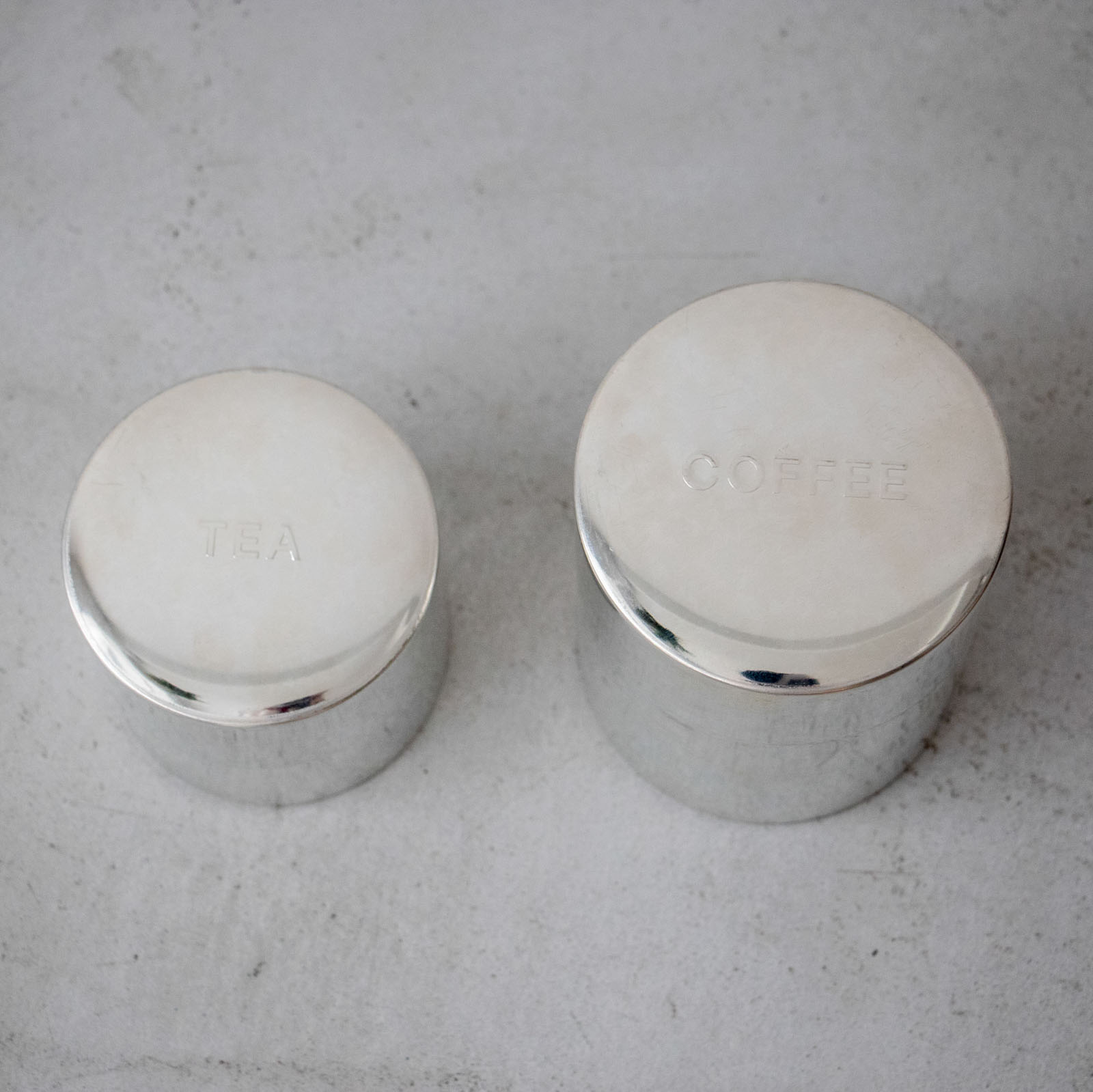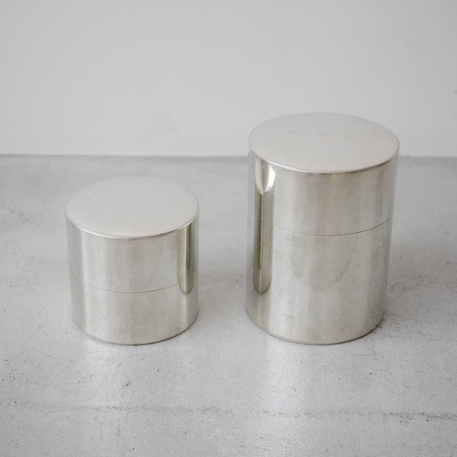 サイズ:コーヒー缶 直径105×高さ140mm(豆で約350g)/ ティー缶 直径95×高さ90mm(豆で約200g)