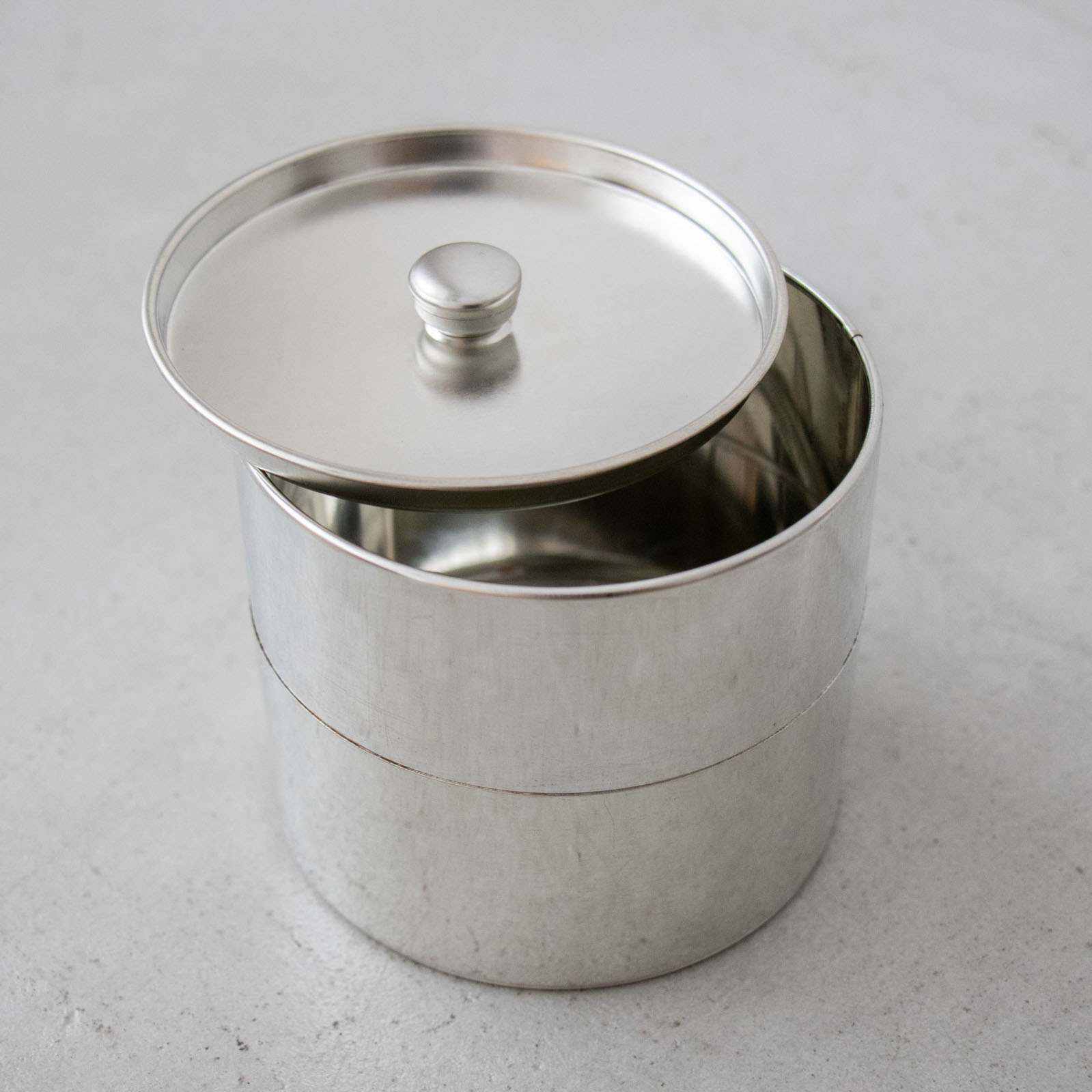 あえてクリアー塗装は施さず、無垢のまま仕上げたブリキは、外国のアンティークマーケットで見つかる古い缶や、老舗のお茶屋さんの棚に並ぶ缶のように、使い続けるほどに、少しずつ表情が育っていきます。
